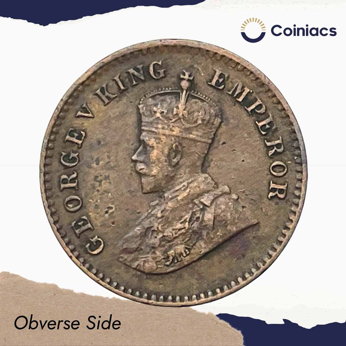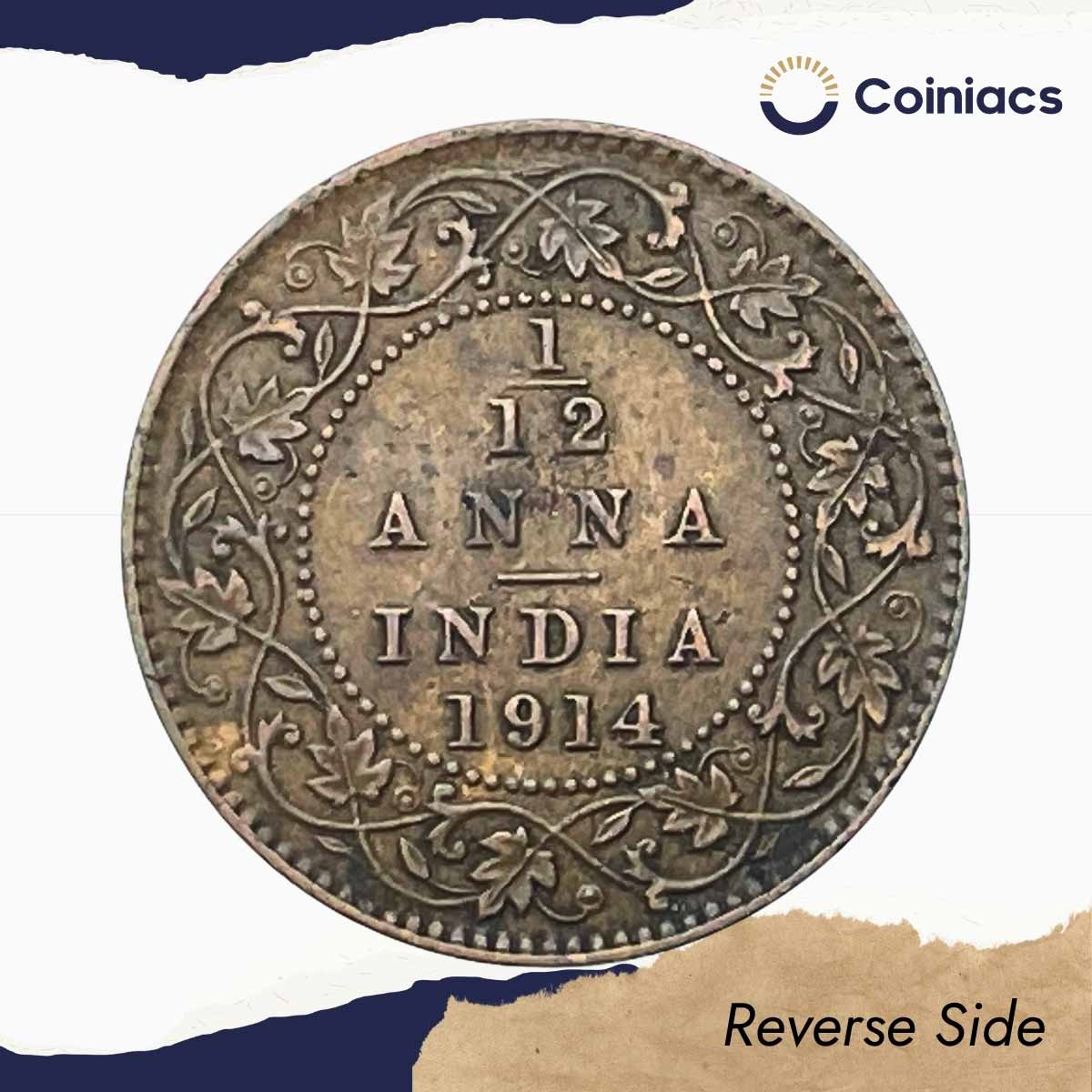1/12 Anna George V King Emperor 1914 Calcutta Mint Bronze Coin, British India Uniform Coinage, XF.