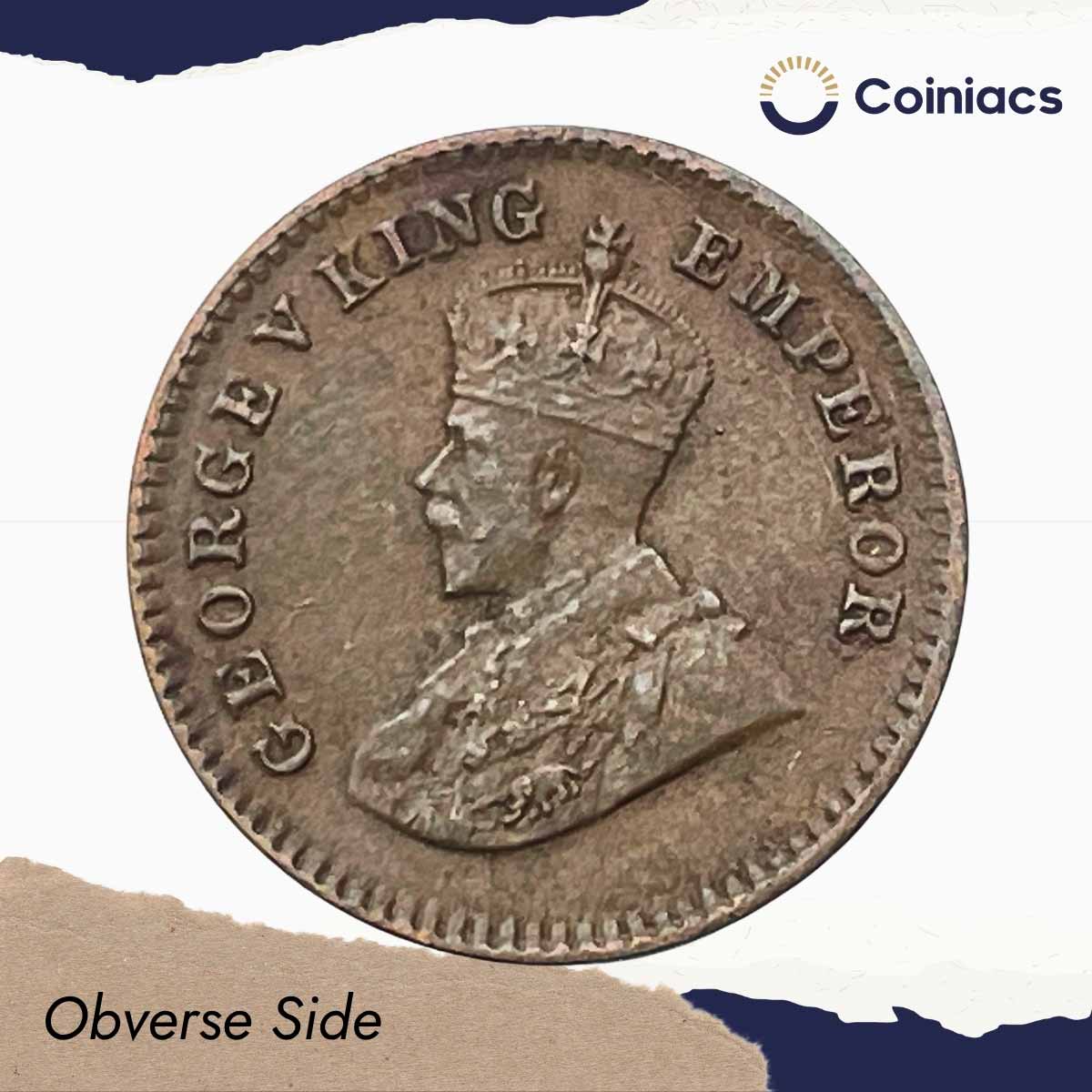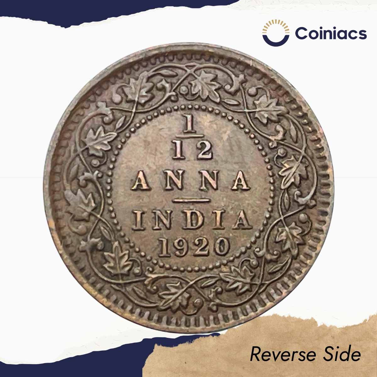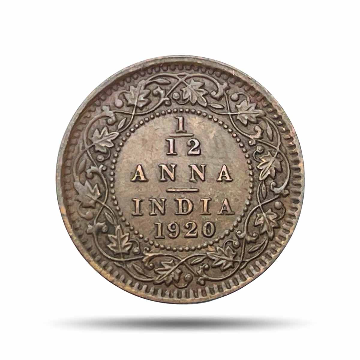 1/12 Anna George V King Emperor 1920 Calcutta Mint Bronze Coin, British India Uniform Coinage, Extra Fine (XF).