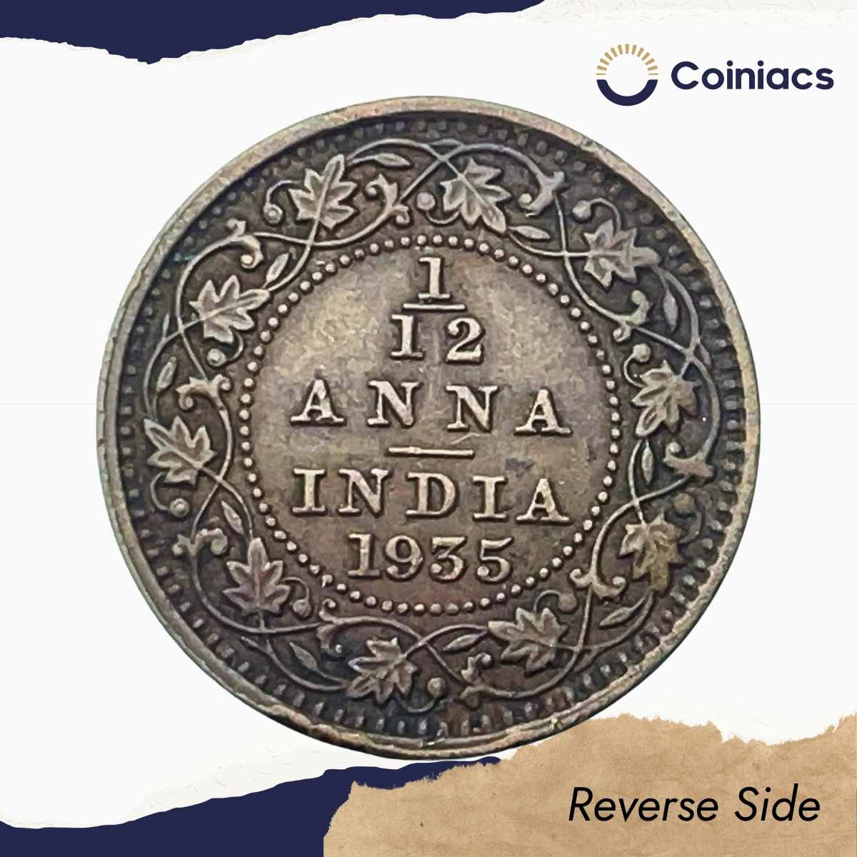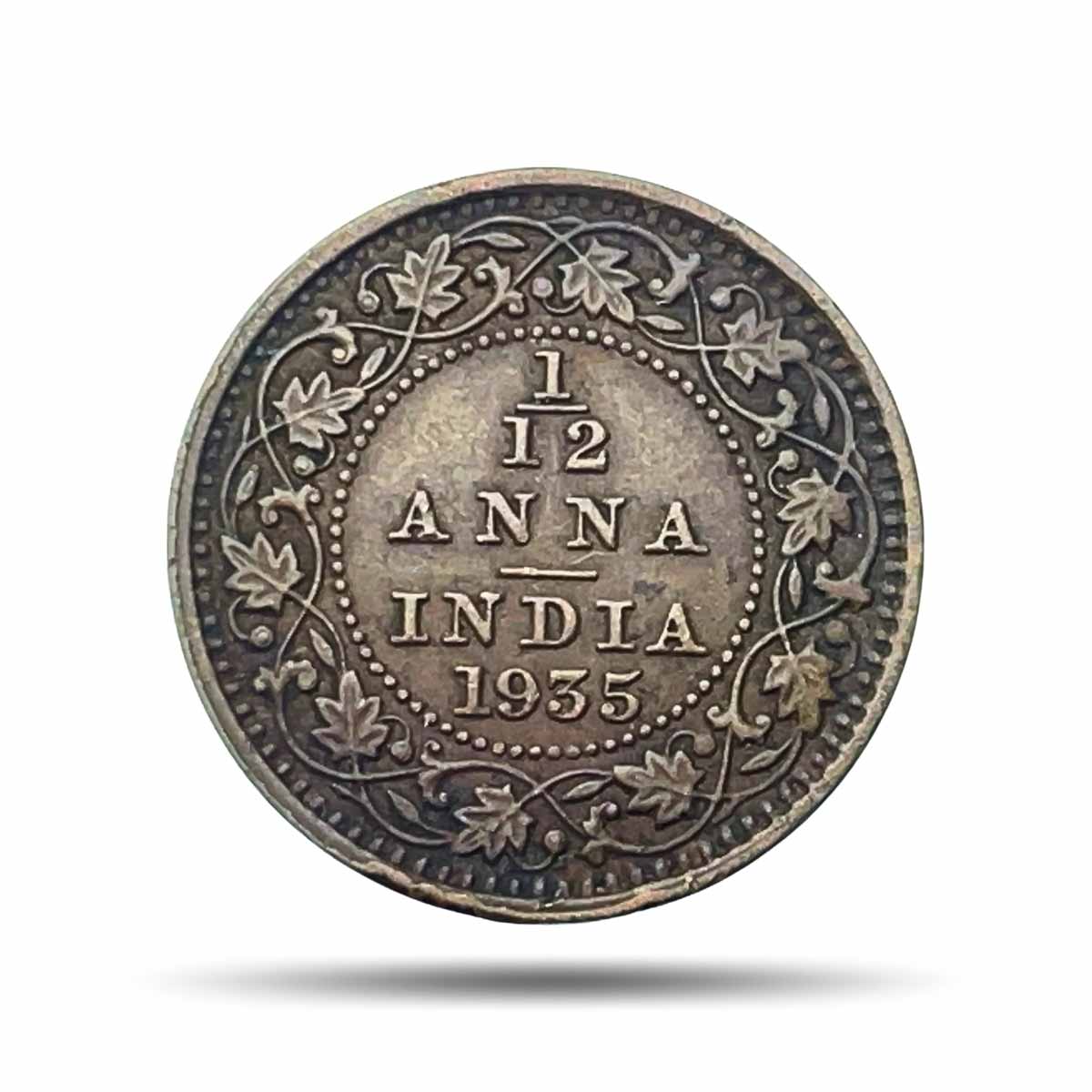 1/12 Anna George V King Emperor 1935 Calcutta Mint Bronze Coin, British India Uniform Coinage, Collectible.