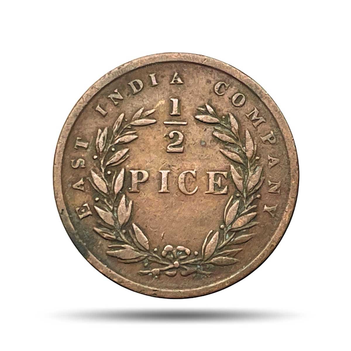 1/2 Pice East India Company 1853 (Obv B, Rev I) Copper Coin, British India Uniform Coinage, Collectible.