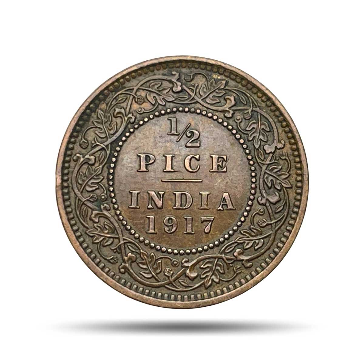 1/2 Pice George V King Emperor 1917 Calcutta Mint Bronze Coin, British India Uniform Coinage, XF.