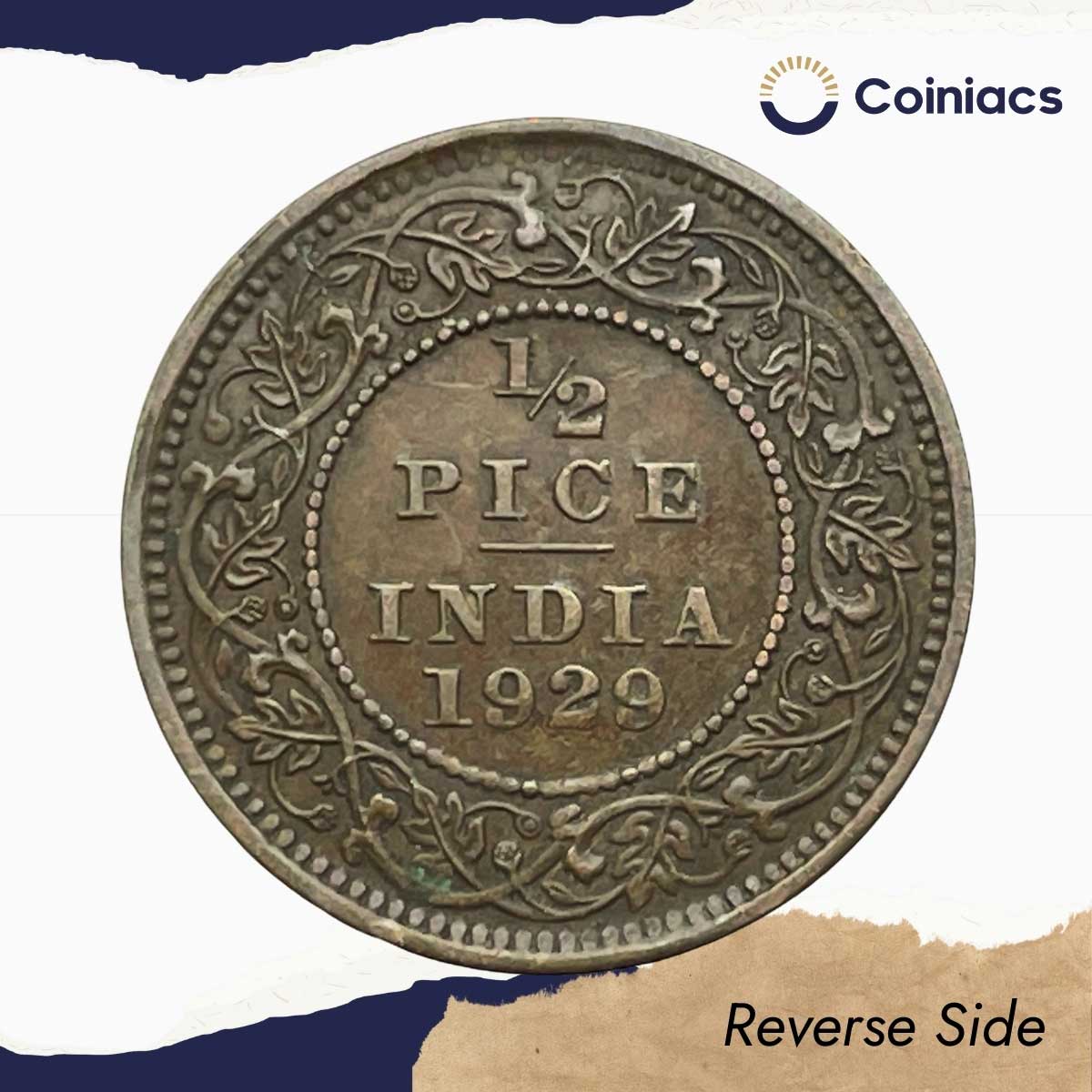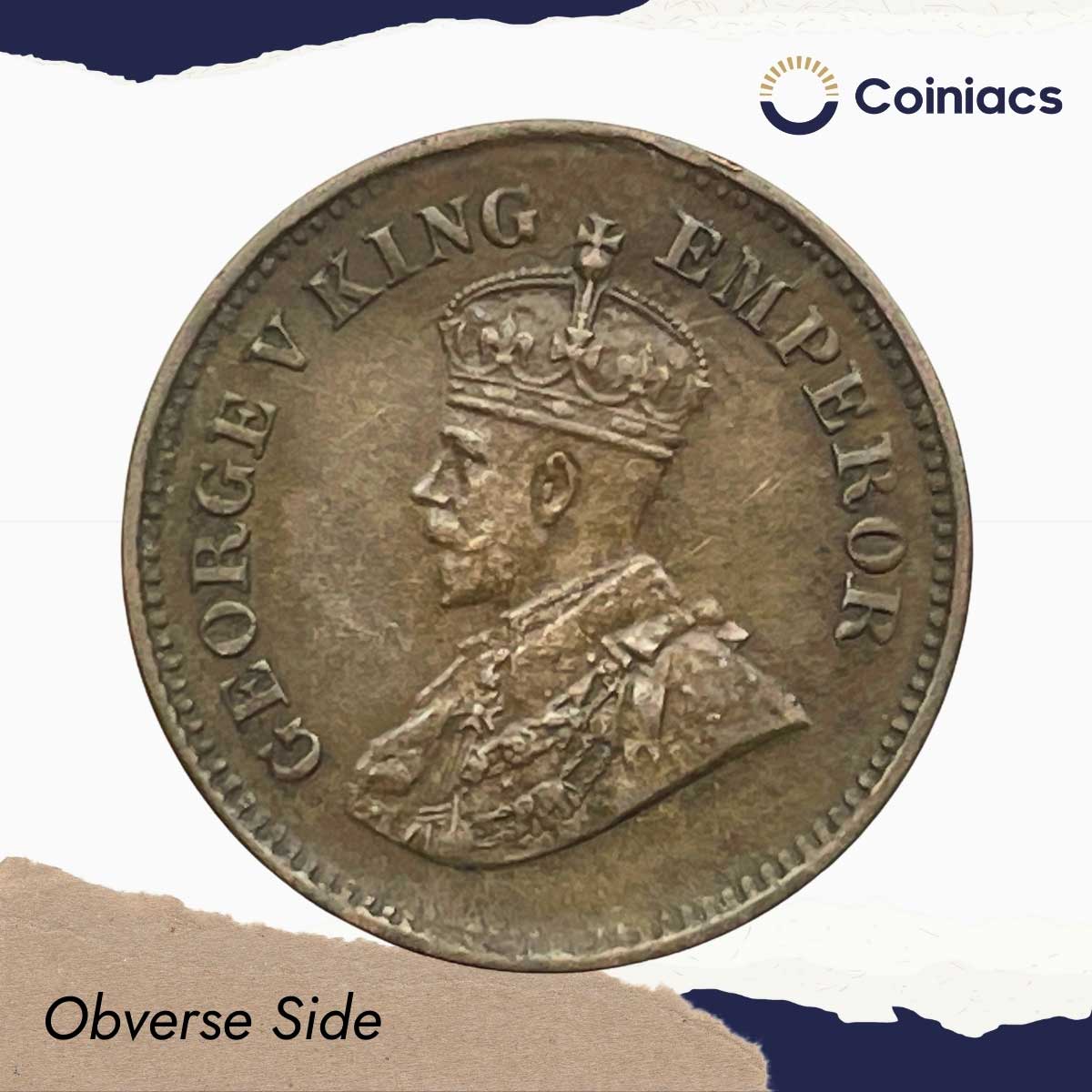1/2 Pice George V King Emperor 1929 Calcutta Mint Bronze Coin, British India Uniform Coinage, Collectible.