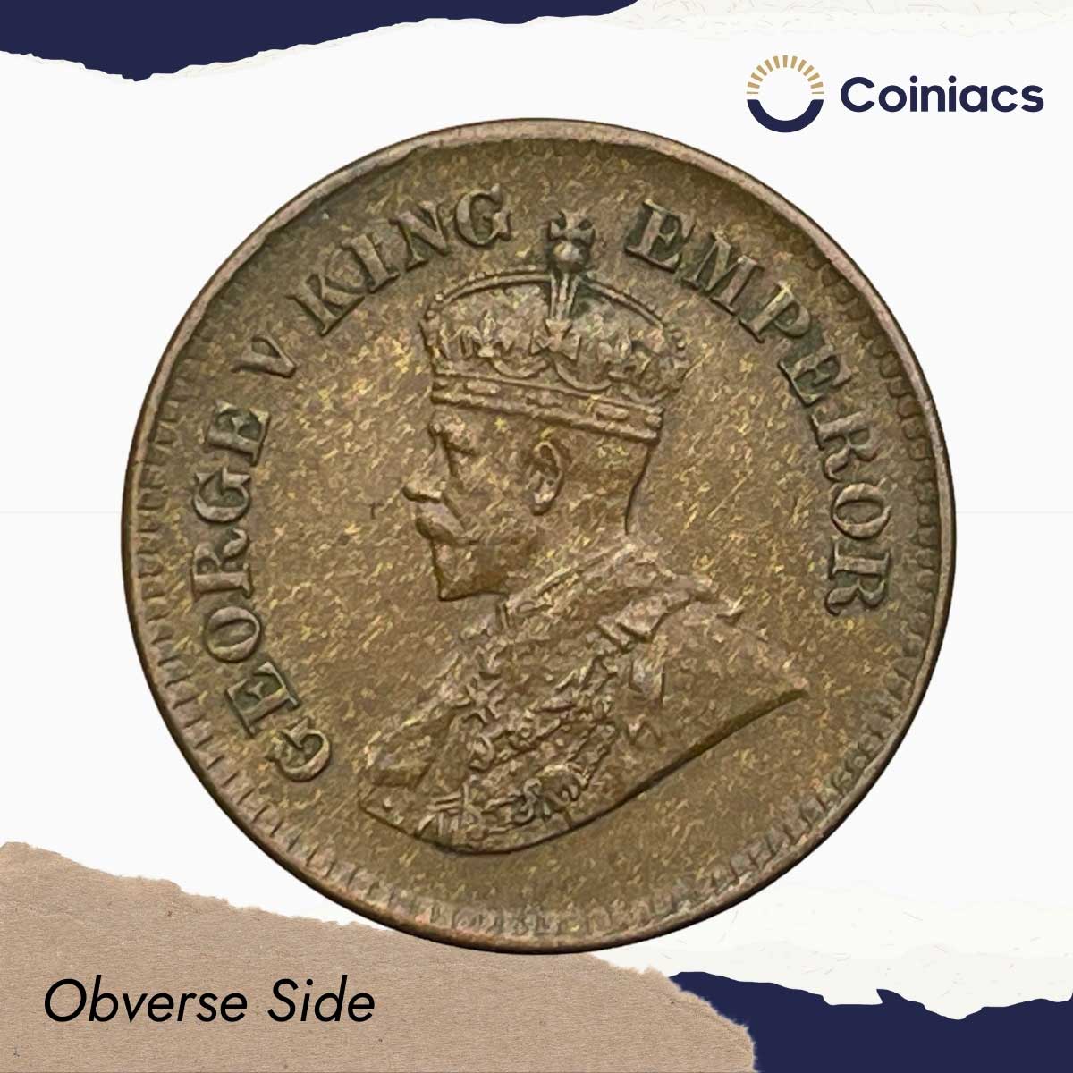 1/2 Pice George V King Emperor 1931 Calcutta Mint Bronze Coin, British India Uniform Coinage, XF.
