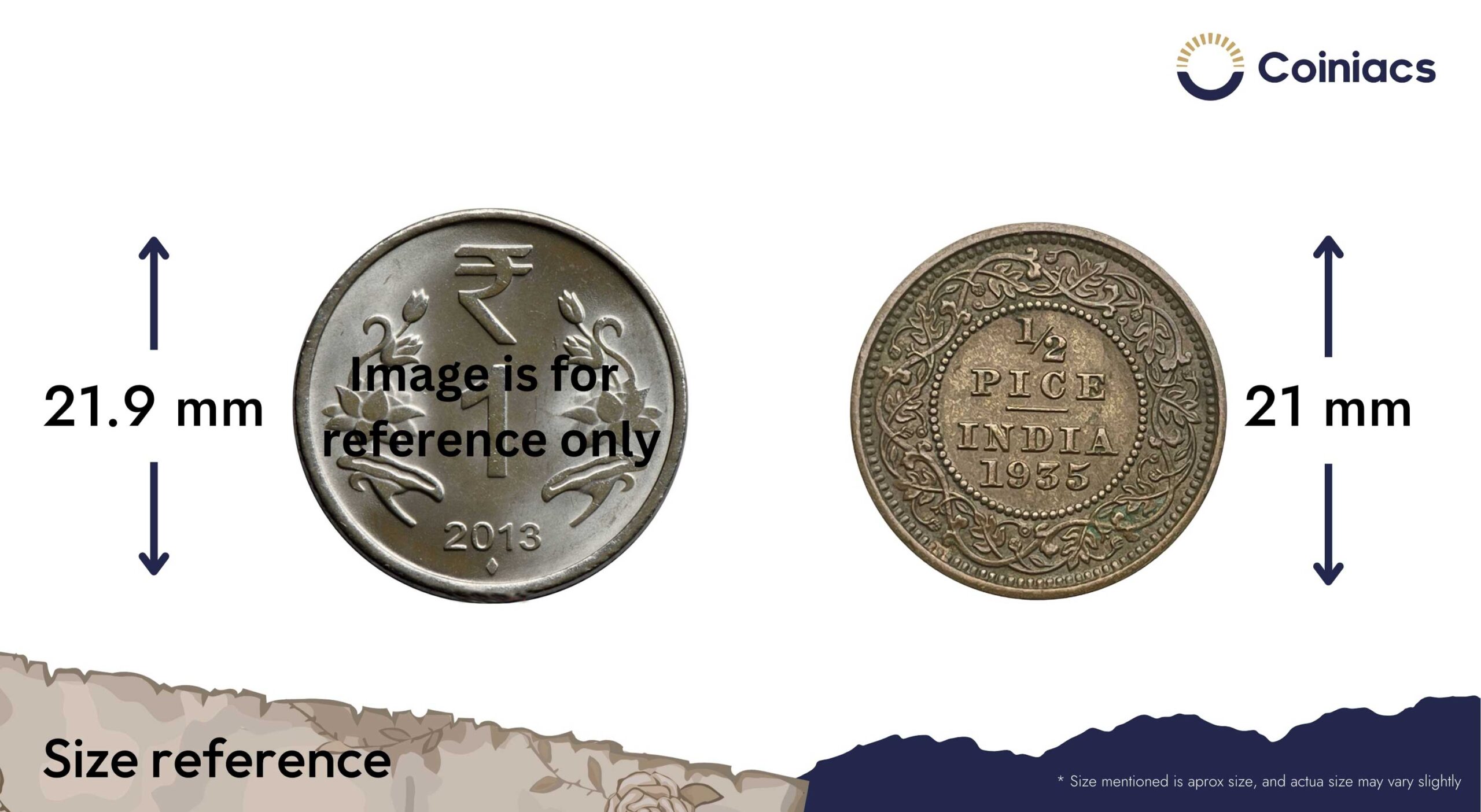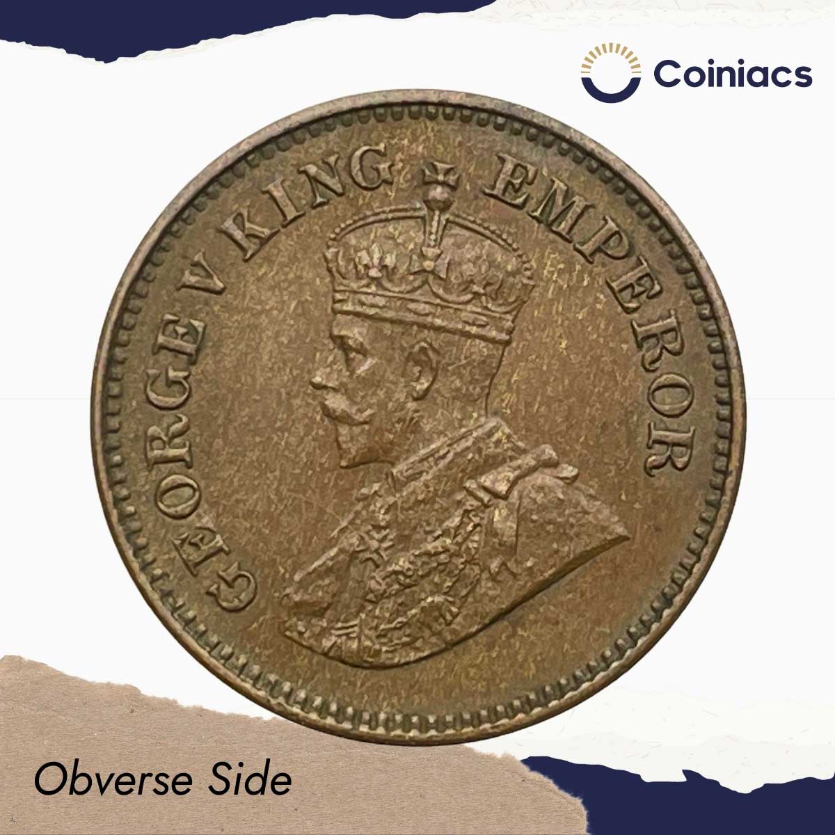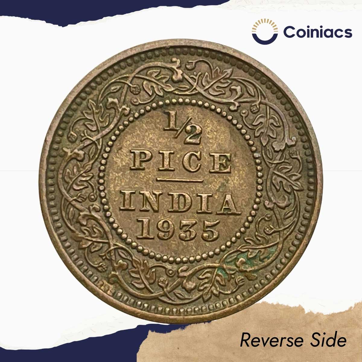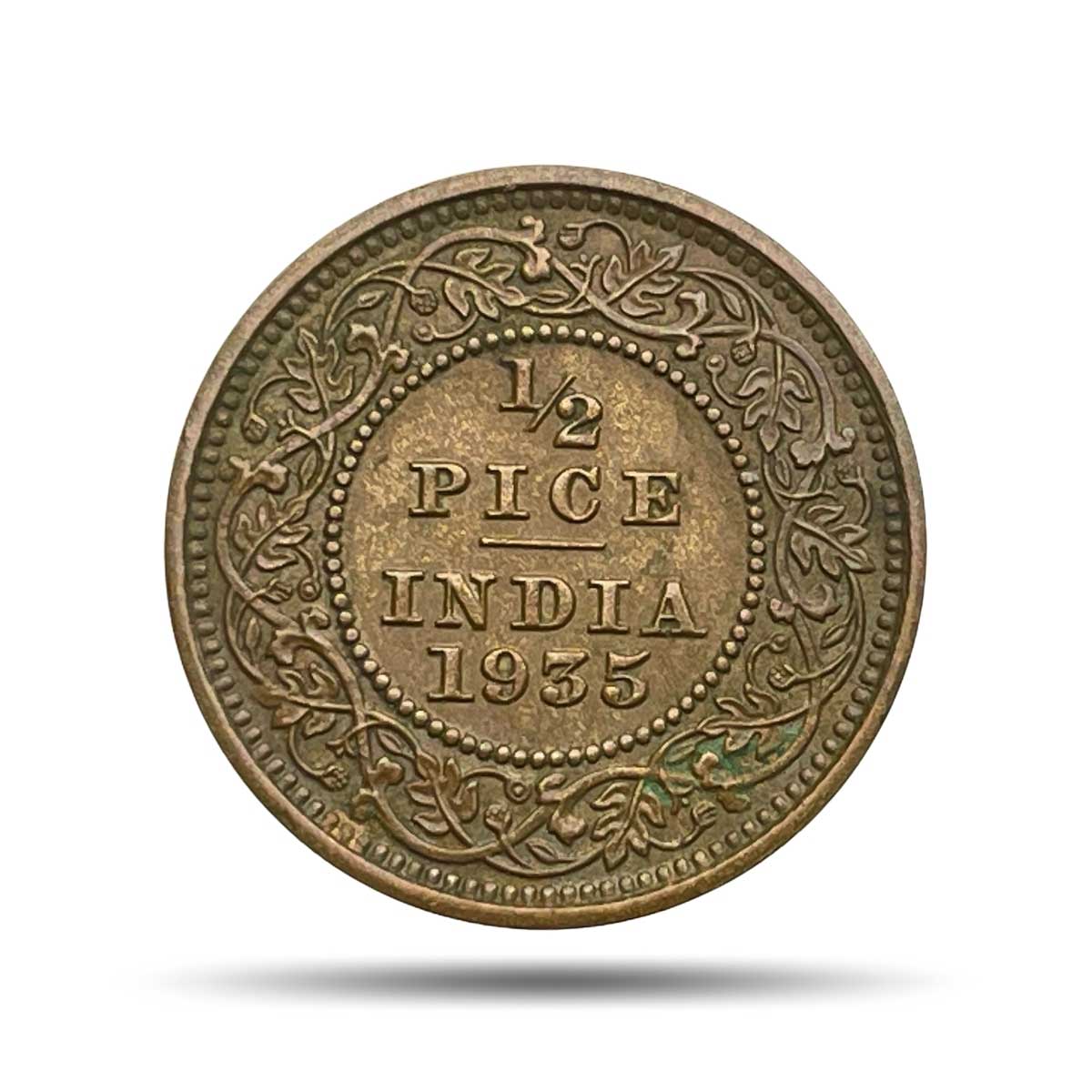 1/2 Pice George V King Emperor 1935 Calcutta Mint Bronze Coin, British India Uniform Coinage, XF.