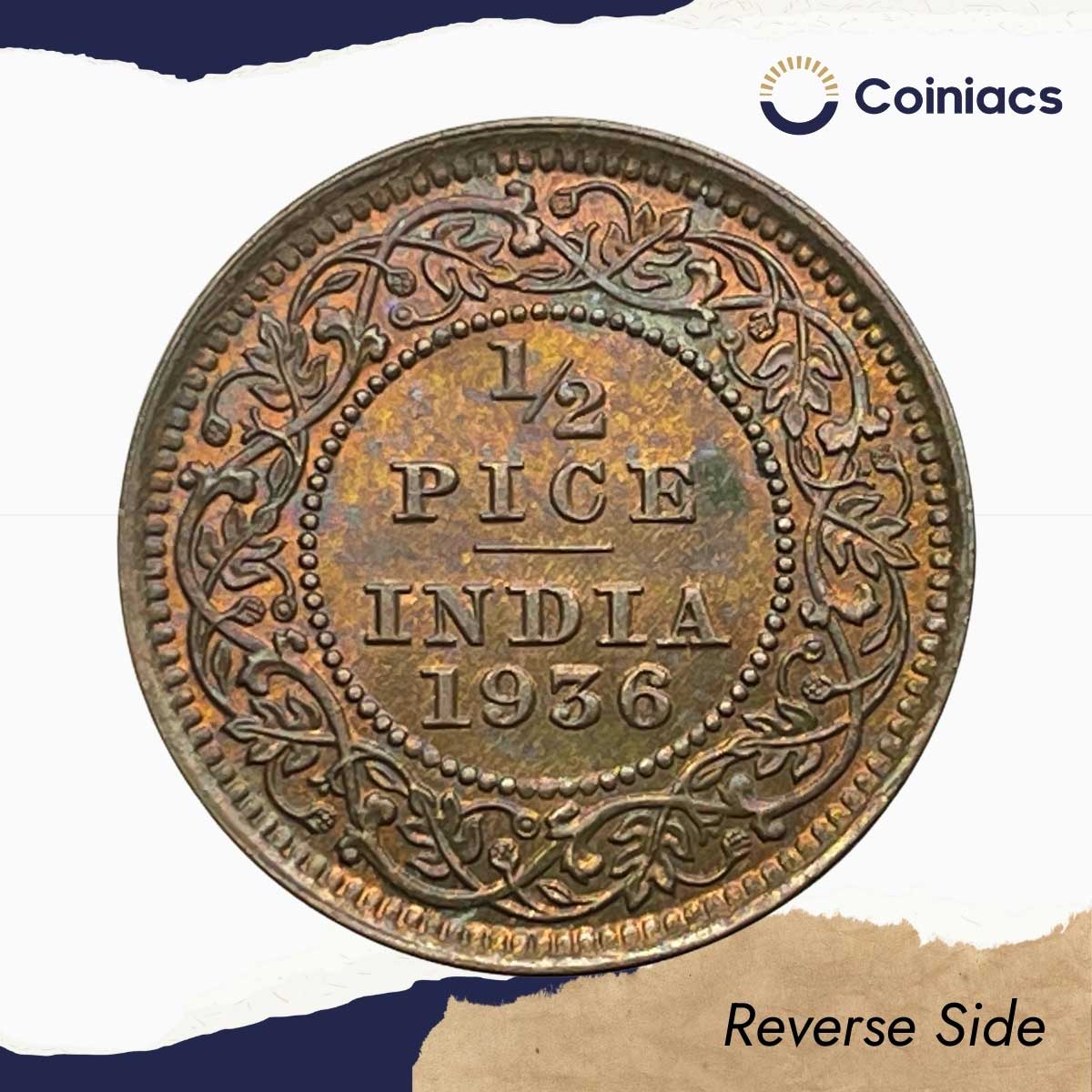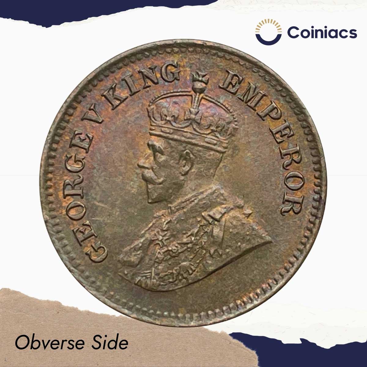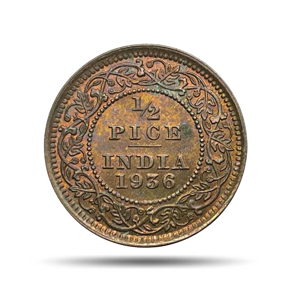 1/2 Pice George V King Emperor 1936 Calcutta Mint Bronze Coin, British India Uniform Coinage, UNC.