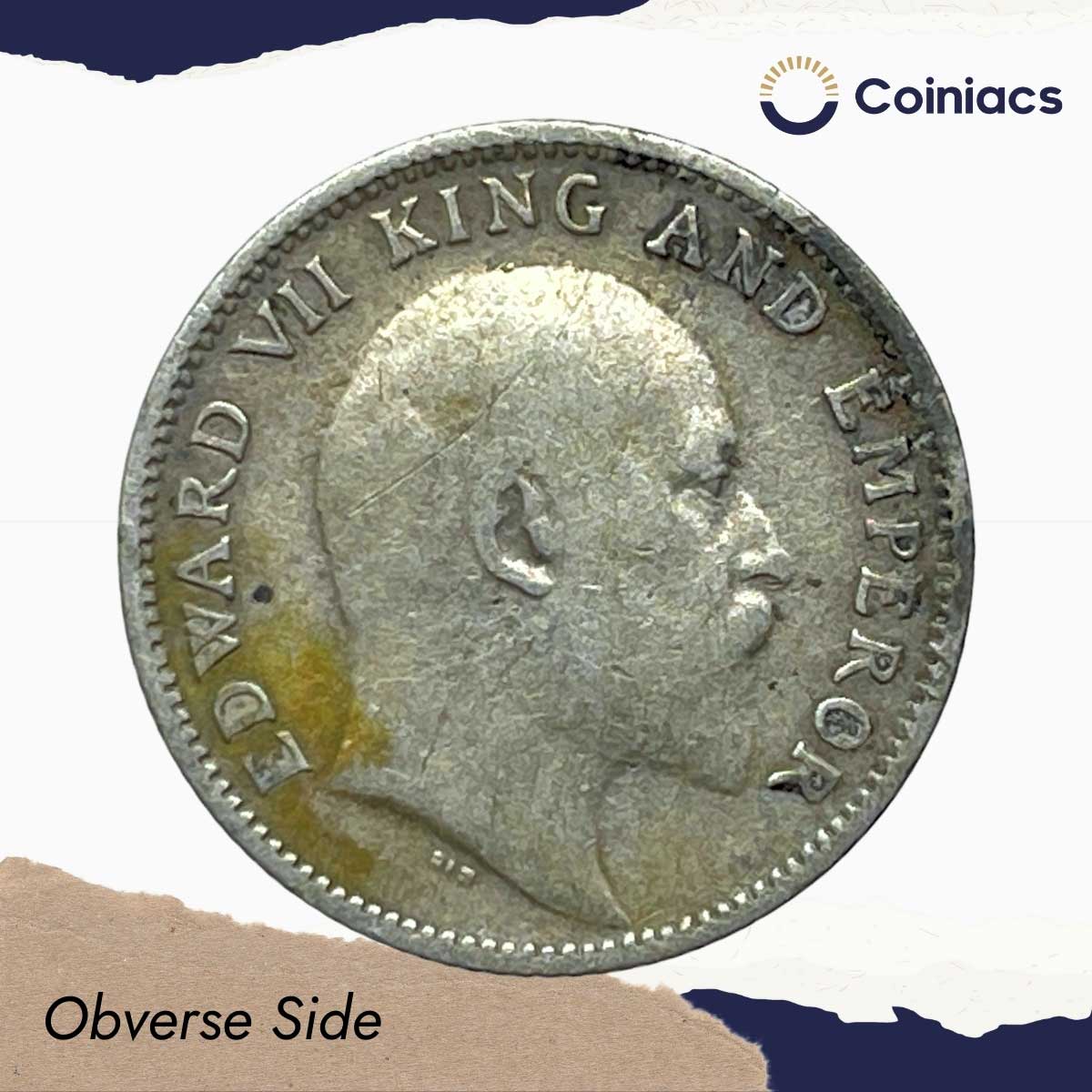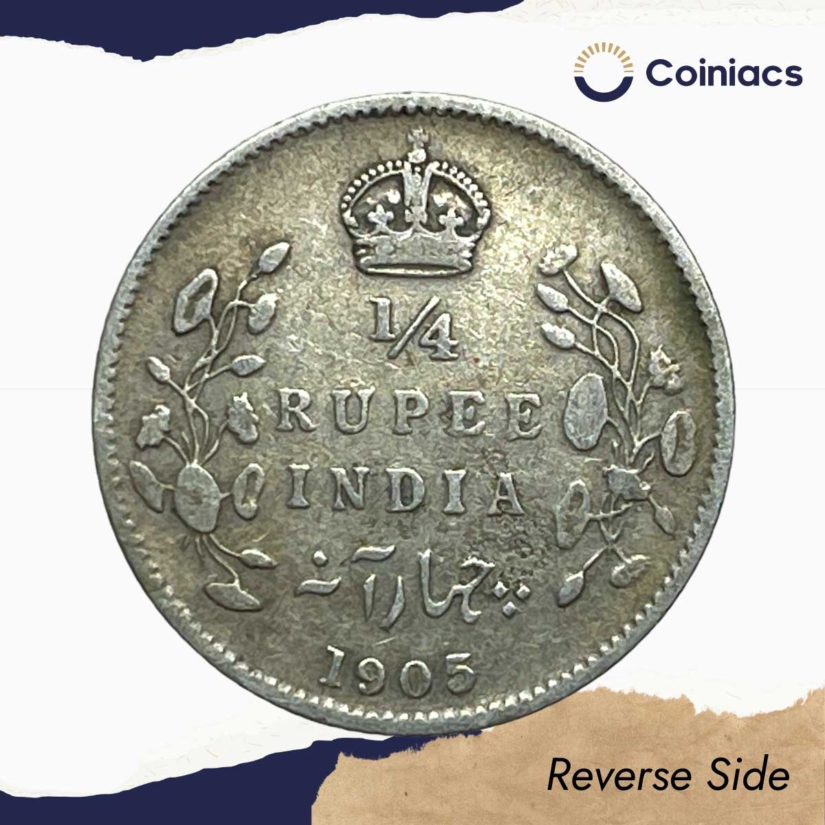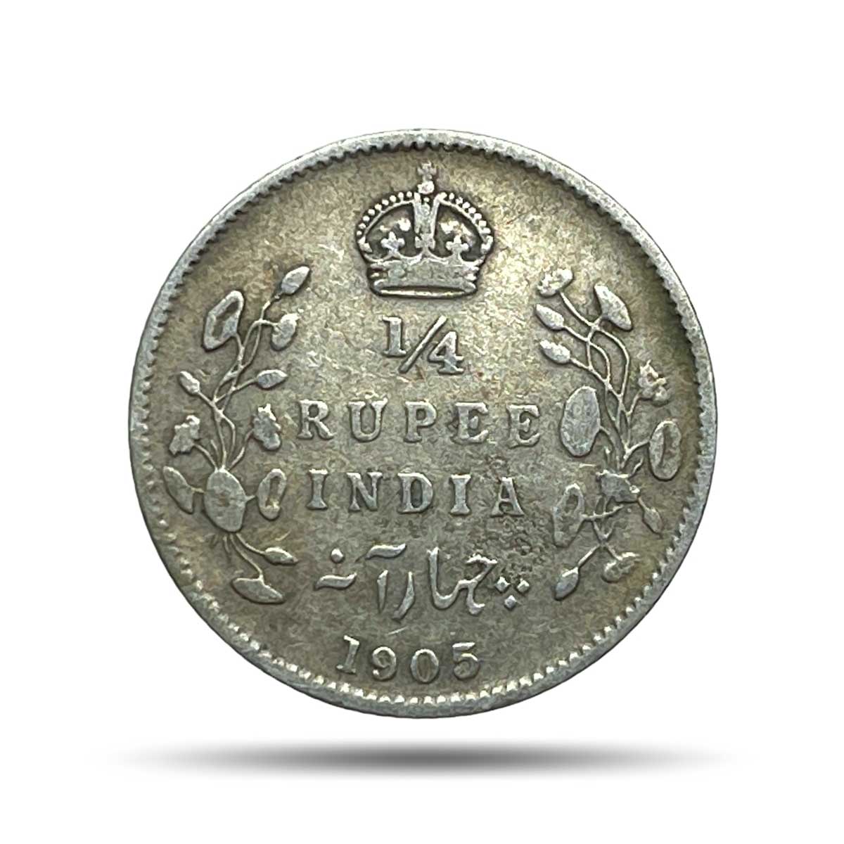 1/4 Rupee Edward VII King And Emperor 1905 Calcutta Mint Silver Coin, British India Uniform Coinage, Collectible.