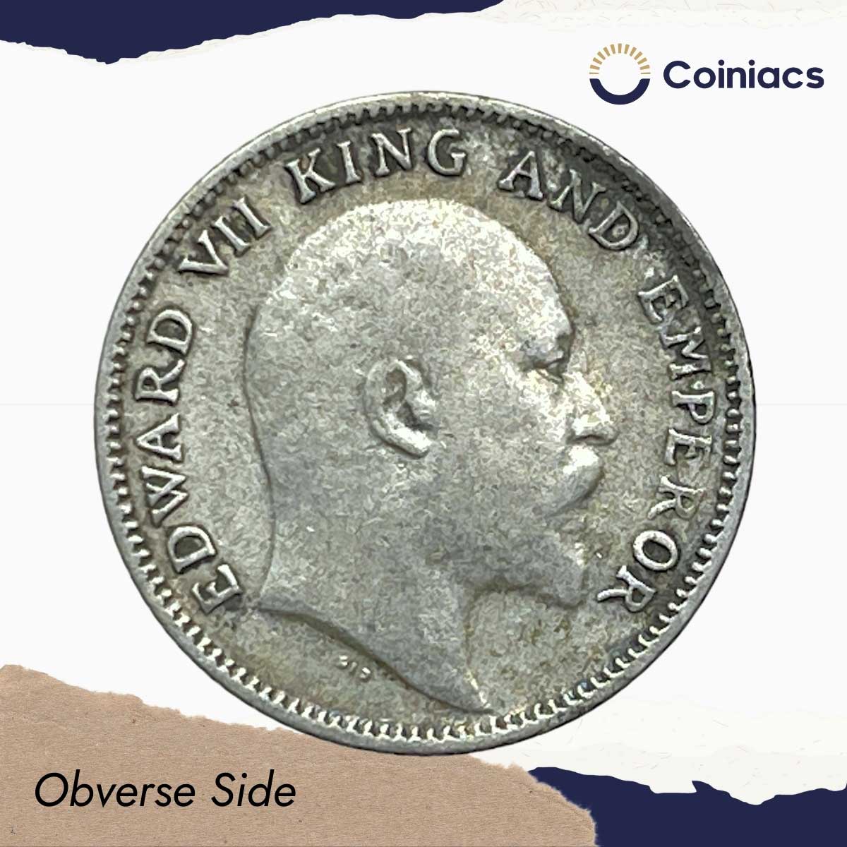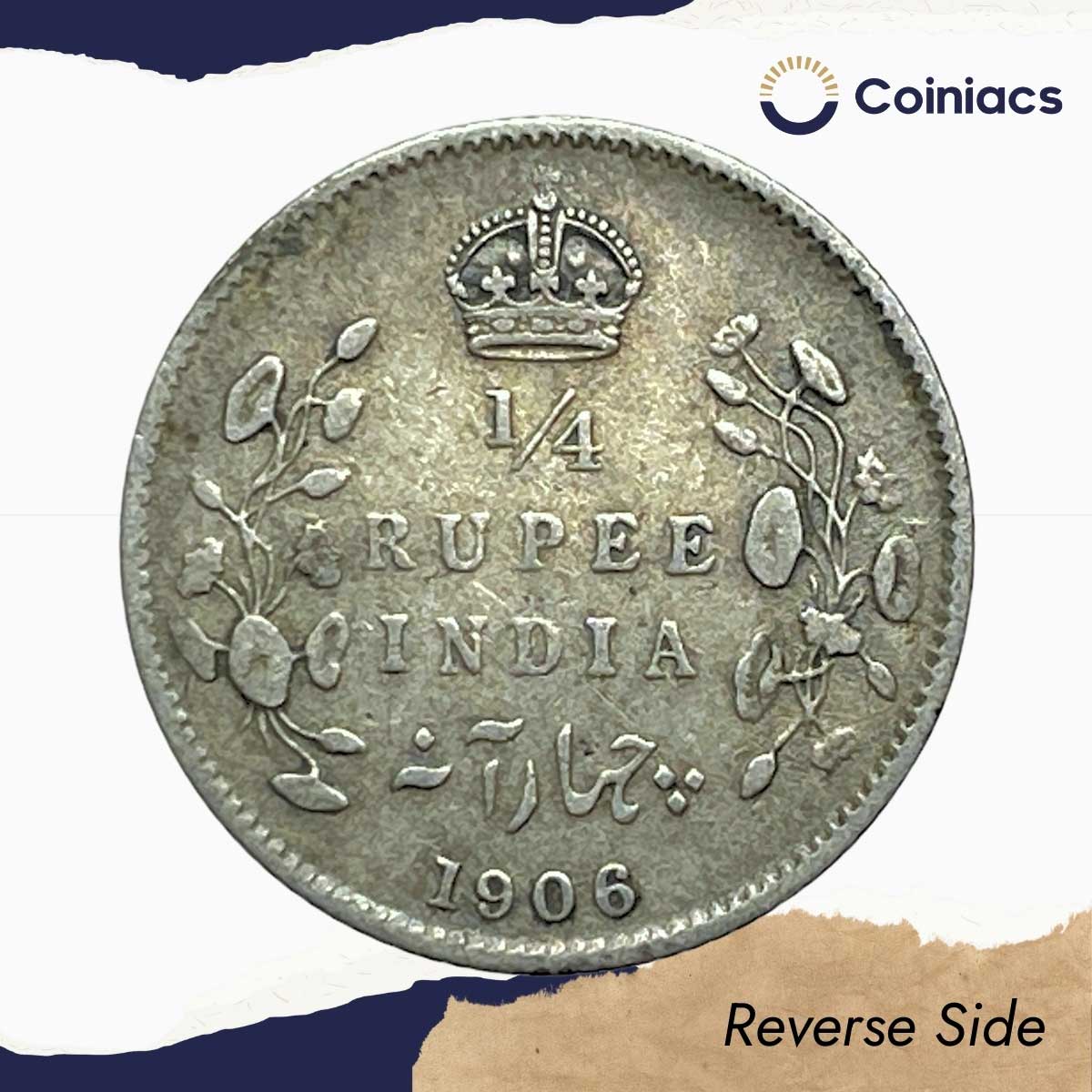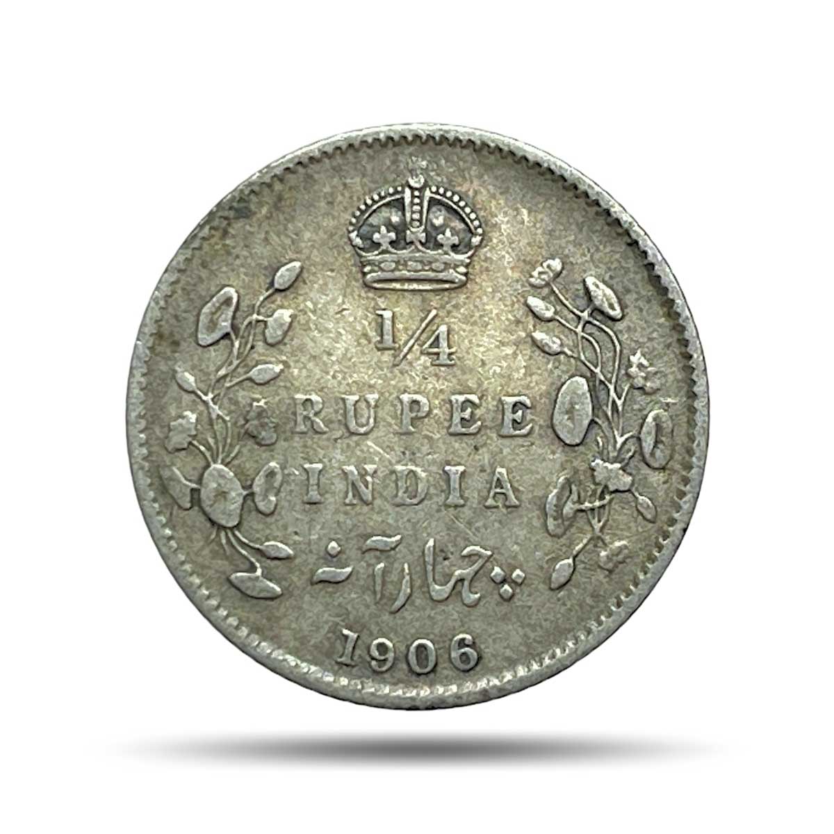 1/4 Rupee Edward VII King And Emperor 1906 Calcutta Mint Silver Coin, British India Uniform Coinage, Collectible.