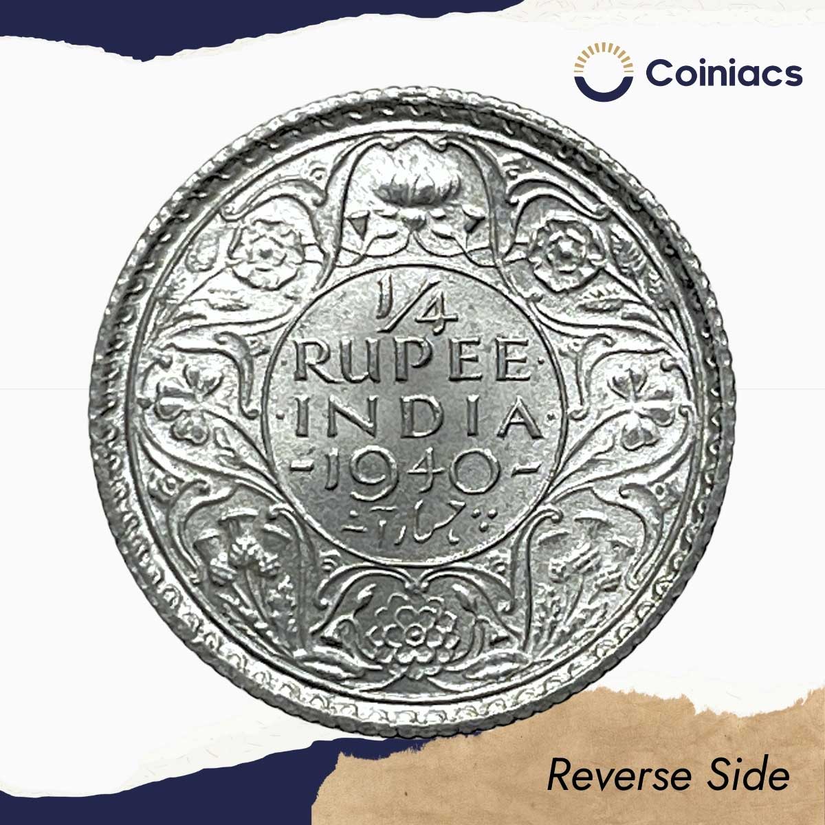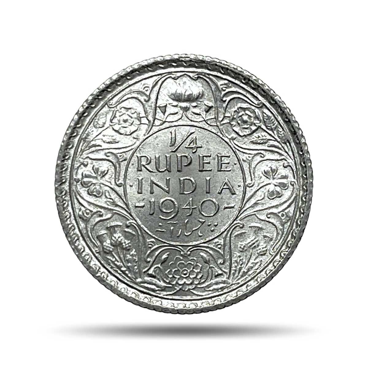 1/4 Rupee George VI King Emperor 1940 Calcutta Mint (Head II, Rev I) Silver Coin, British India Uniform Coinage, UNC.