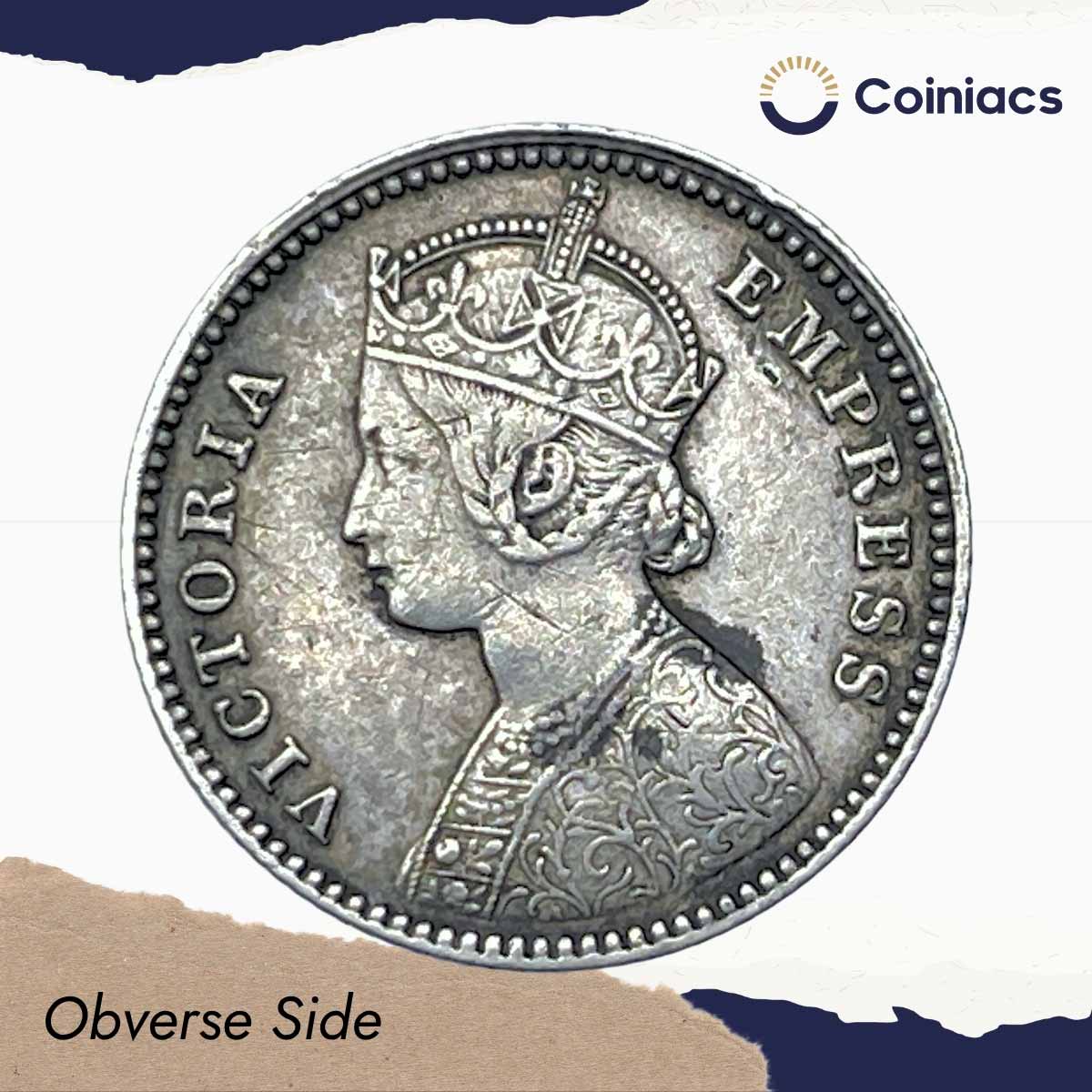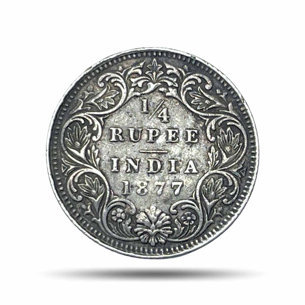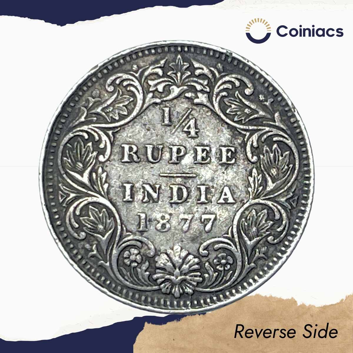 1/4 Rupee Victoria Empress 1877 (Obv B, Rev I) Calcutta Mint Silver Coin, British India Uniform Coinage, Collectable.