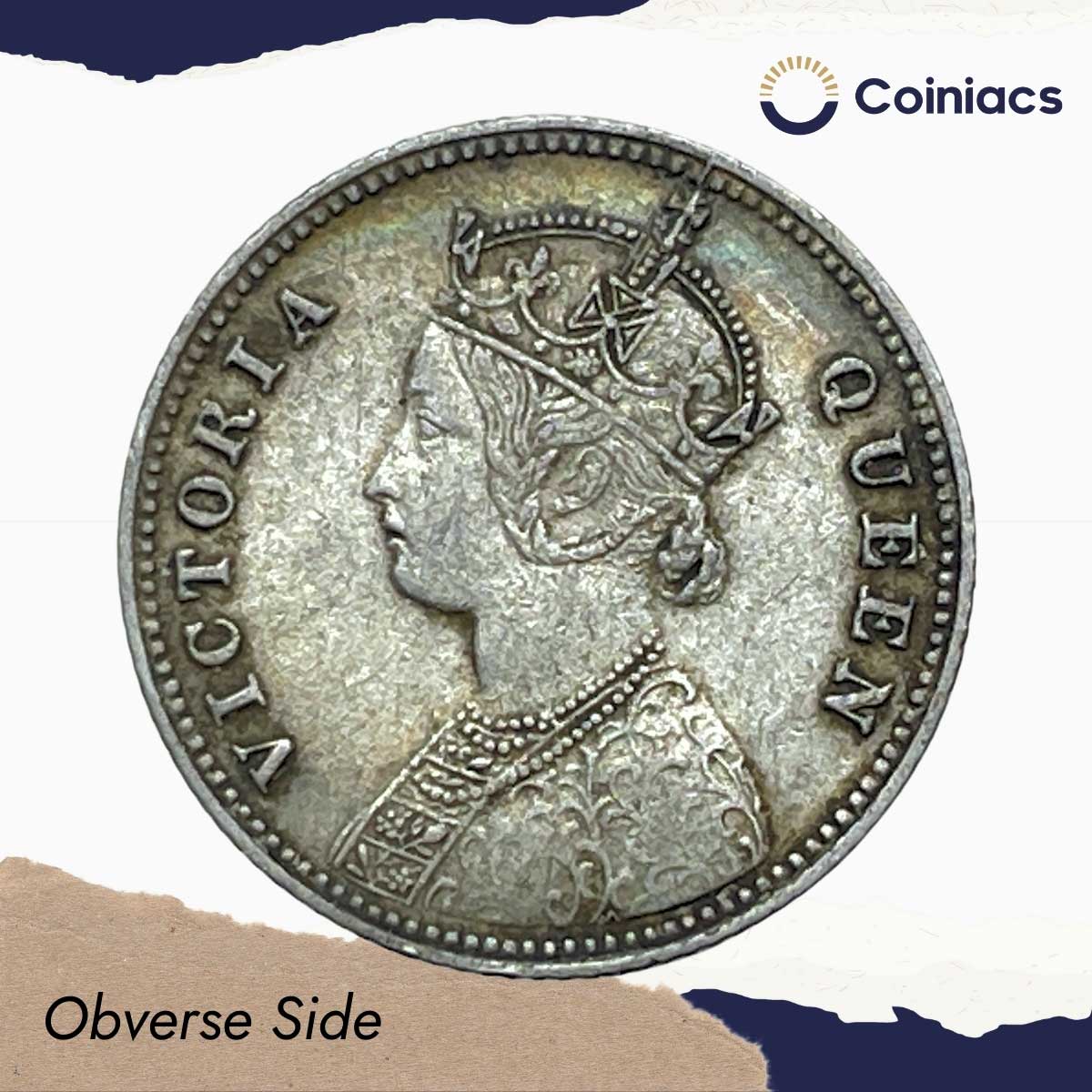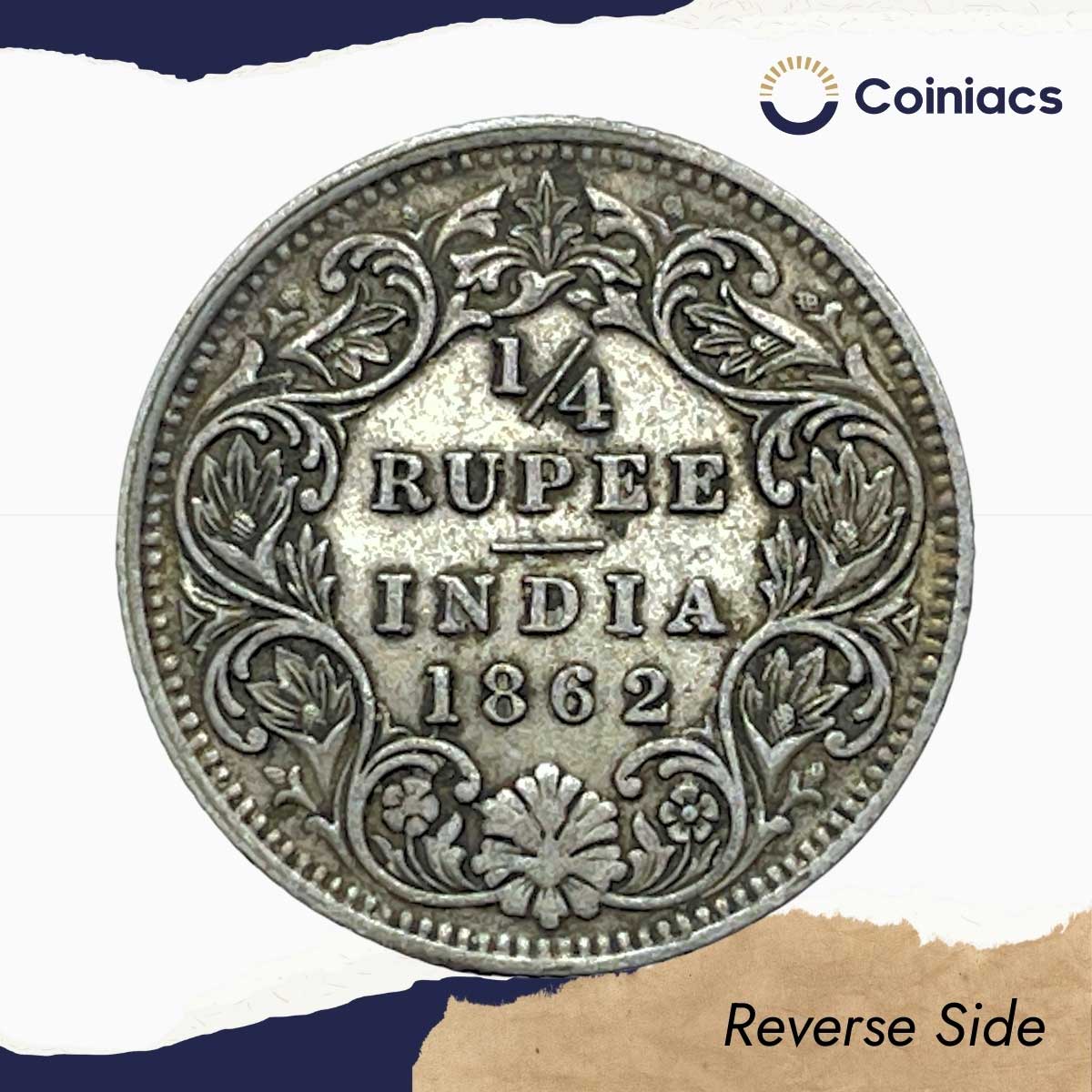 1/4 Rupee Victoria Queen 1862 Silver Coin, British India Uniform Coinage, Collectable.