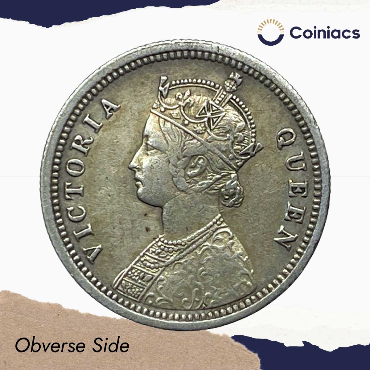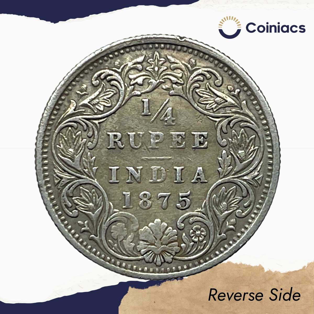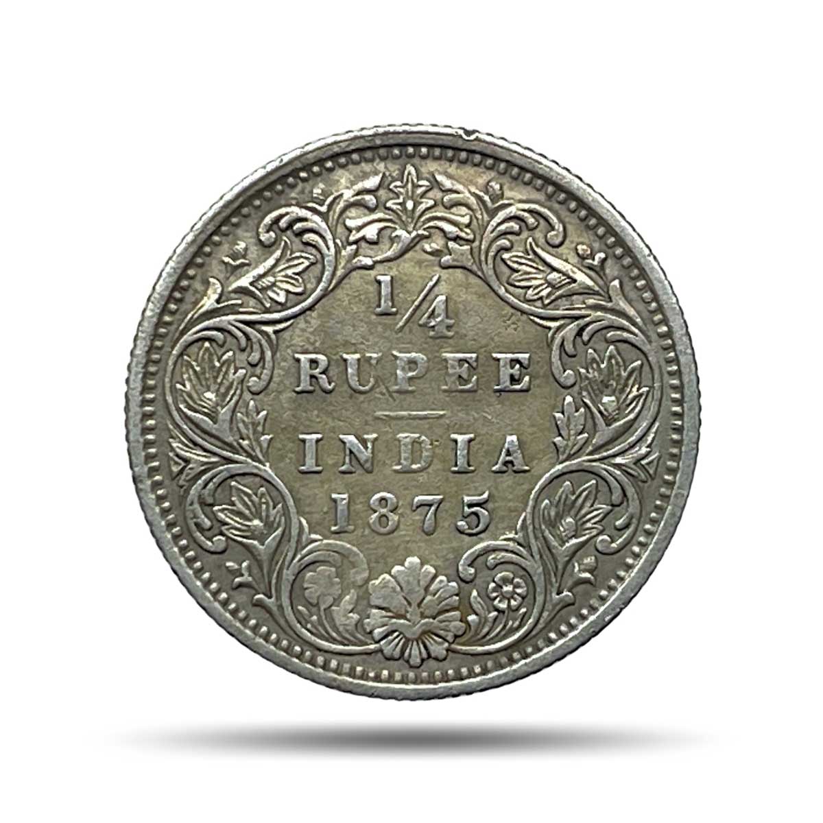 1/4 Rupee Victoria Queen 1875 (Key date) Silver Coin, British India Uniform Coinage, Collectible.