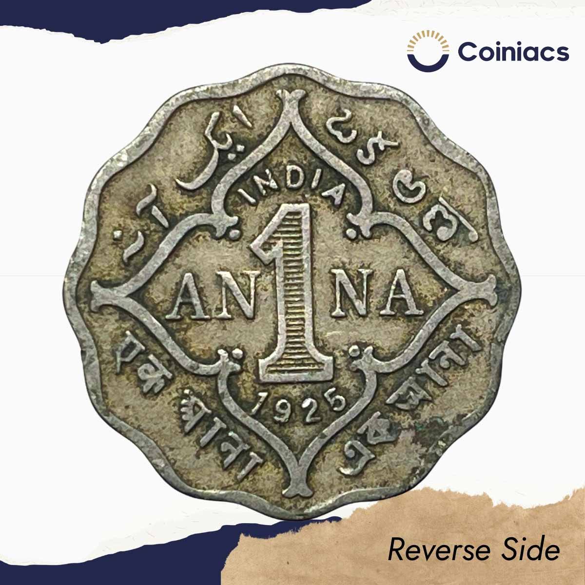 1 Anna George V King Emperor 1925 Calcutta Mint Cupro-Nickel Coin, British India Uniform Coinage, Collectible.