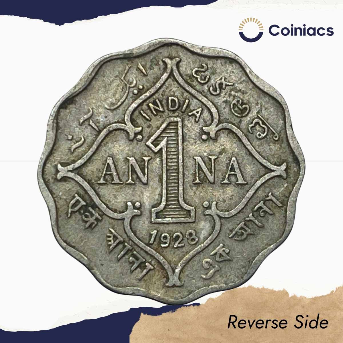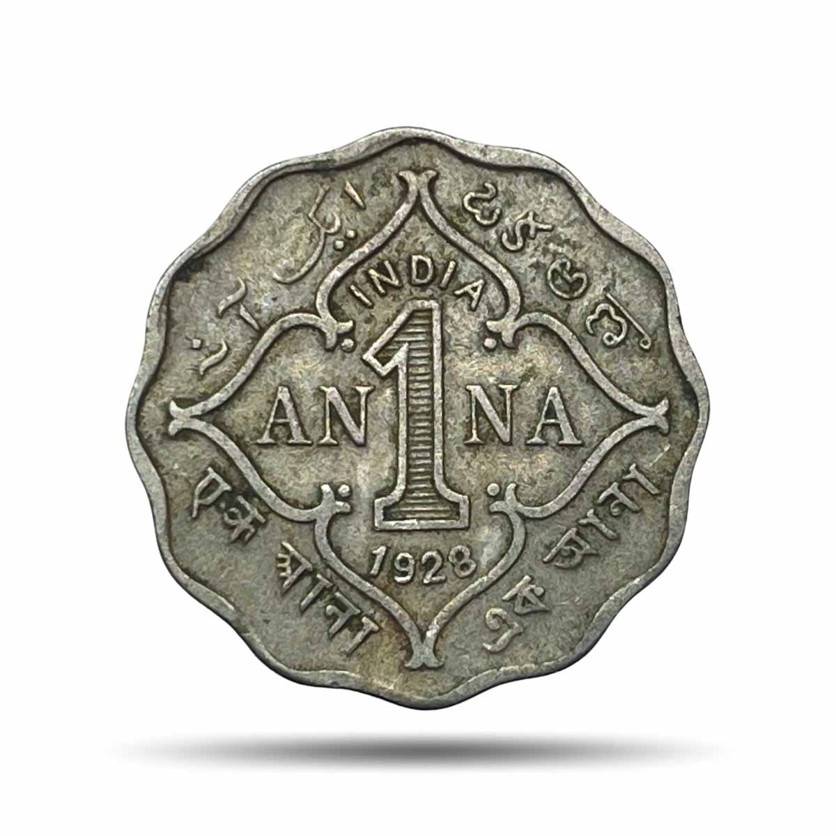 1 Anna George V King Emperor 1928 Calcutta Mint Cupro-Nickel Coin, British India Uniform Coinage, Collectible.