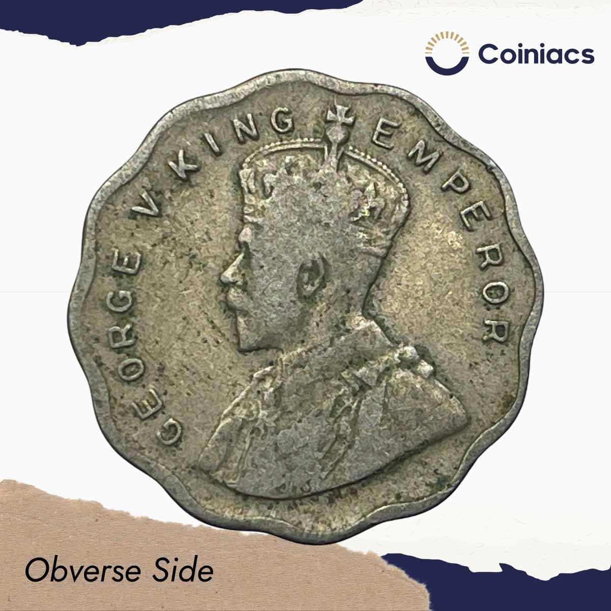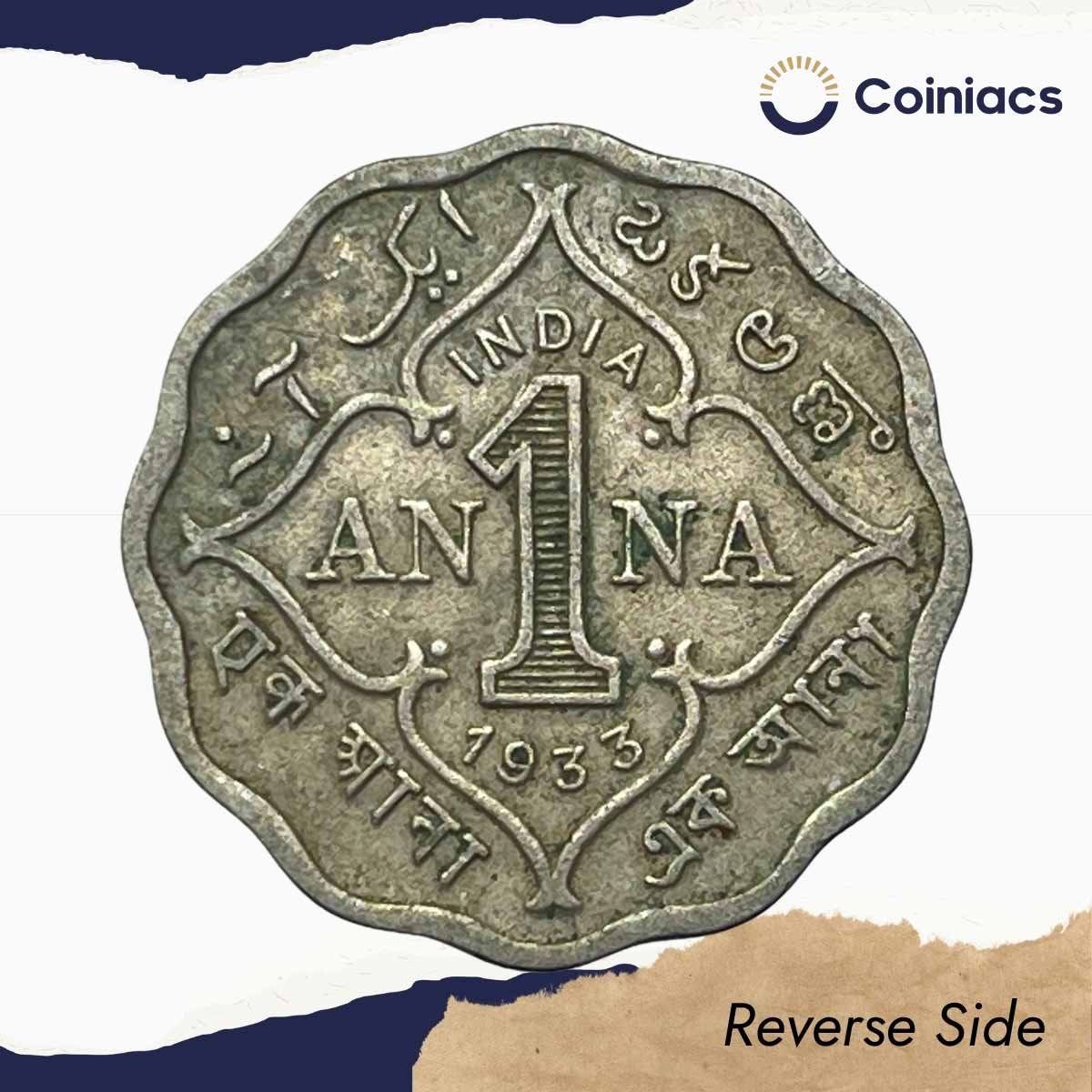 1 Anna George V King Emperor 1933 Calcutta Mint Cupro-Nickel Coin, British India Uniform Coinage, Collectible.