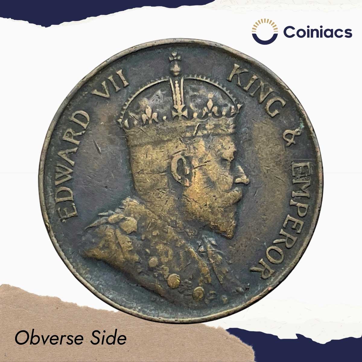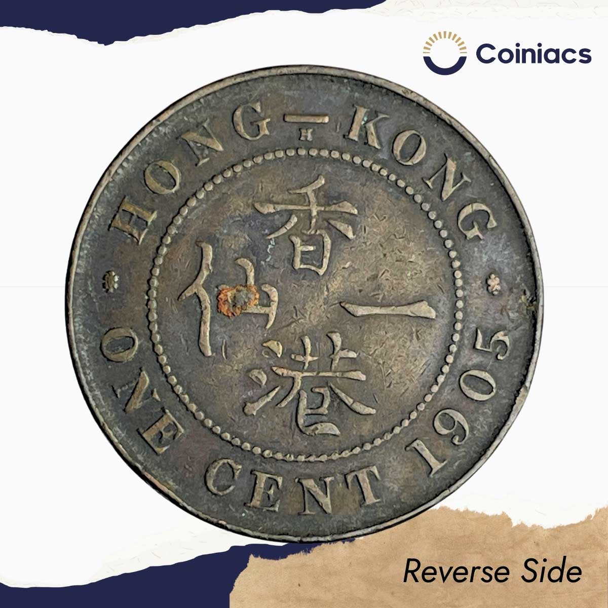 1 Cent Edward VII 1905 Copper Coin, Honk Kong, Collectible.