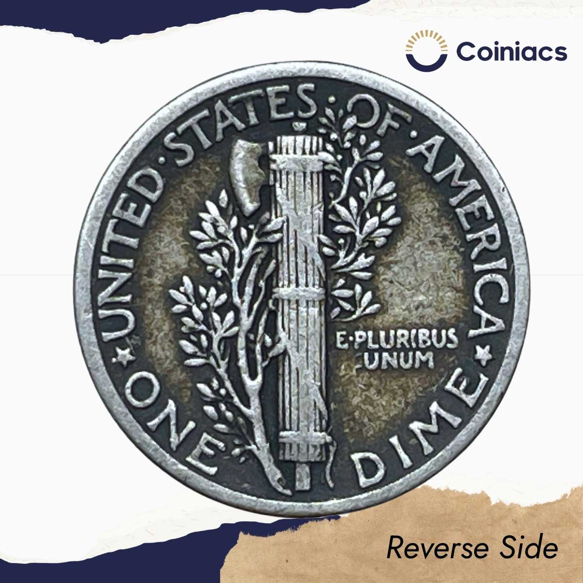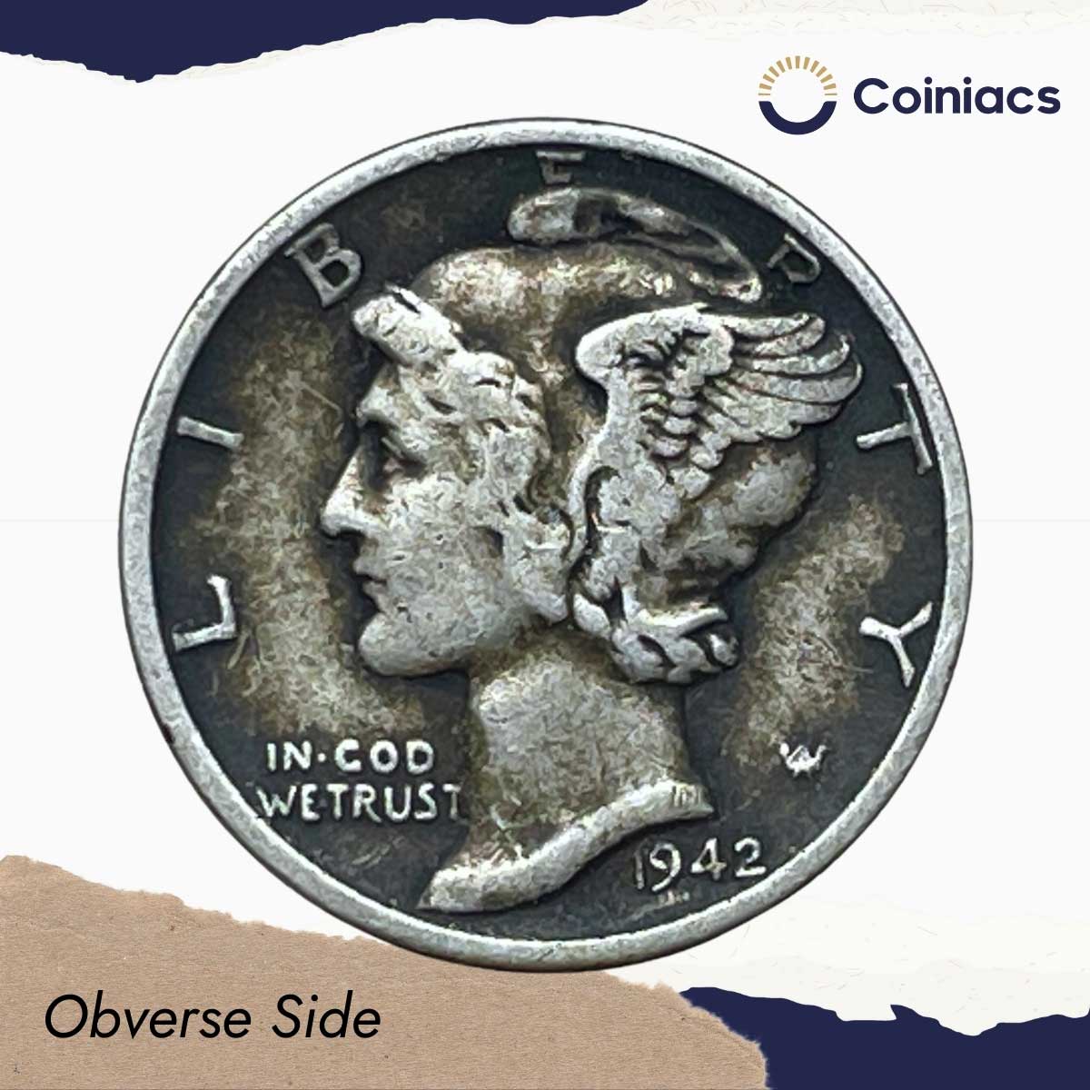 1 Dime (Mercury Dime) 1942 CE Silver Coin, United States of America, Collectible.