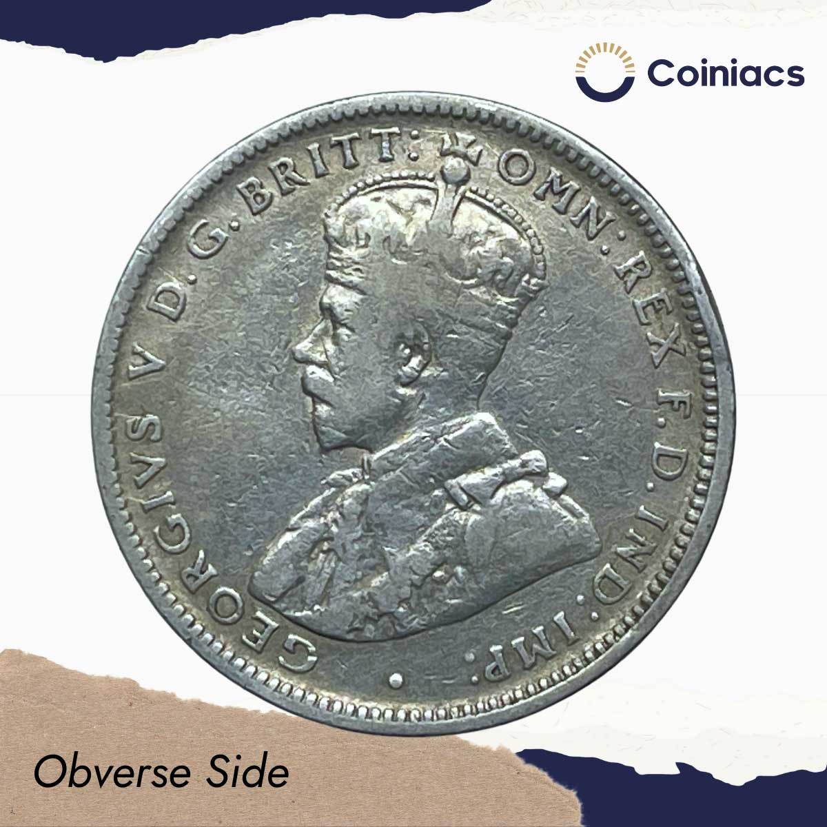 1 Shilling George V 1916 CE Royal Mint, Melbourne Silver Coin, Australia, Collectible.