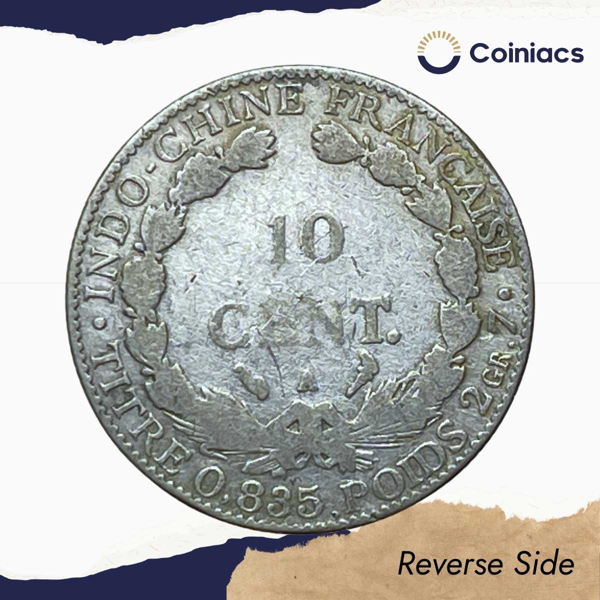 10 Cents 1900 CE Monnaie de Paris Mint Silver Coin, French Indo-China, Collectible.