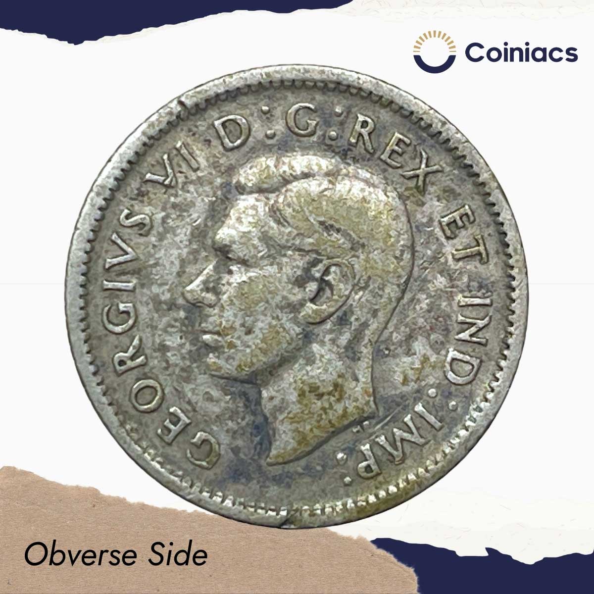 10 Cents George VI 1940 Royal Canadian Mint of Ottawa Silver Foreign Coin, Canada, Collectible.