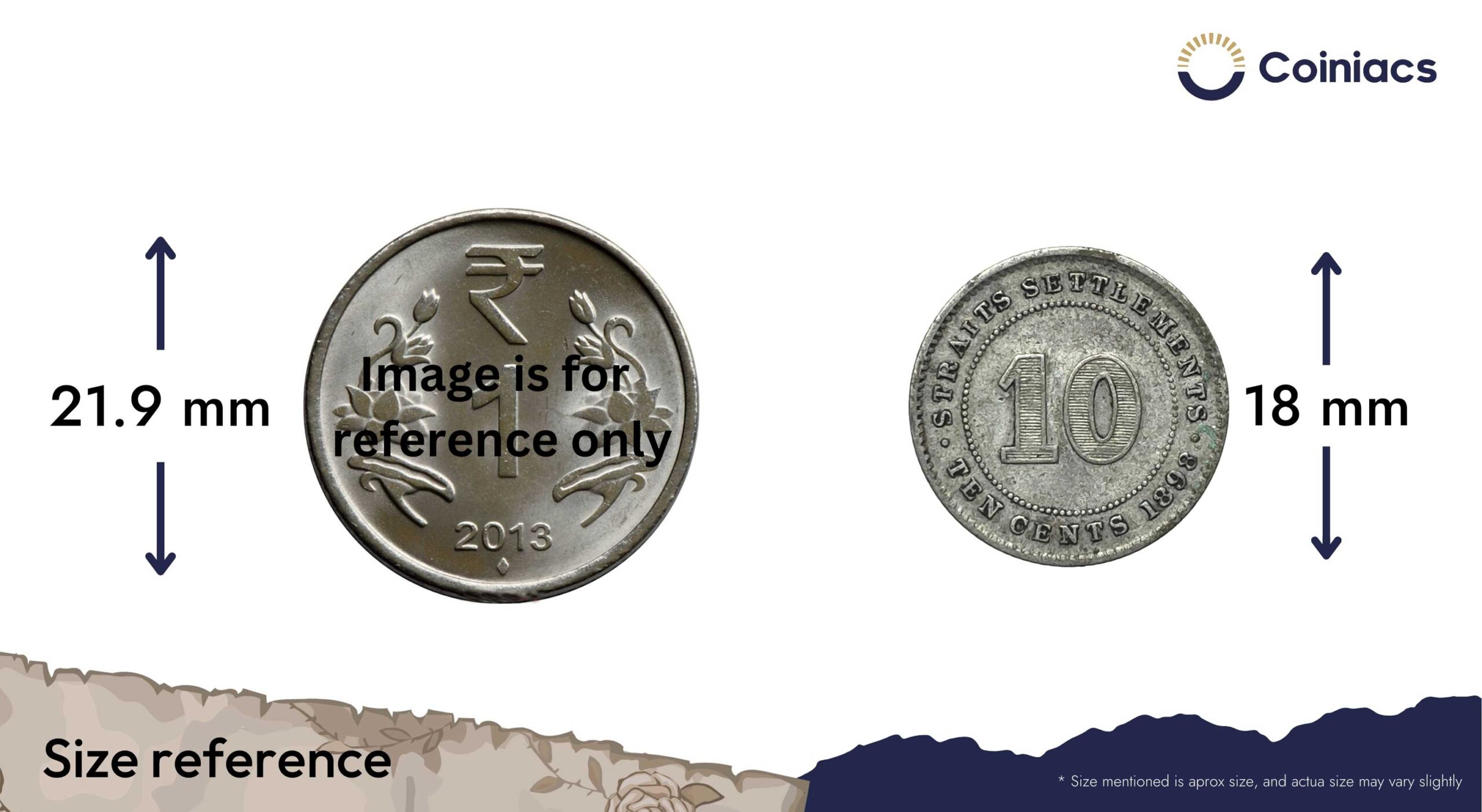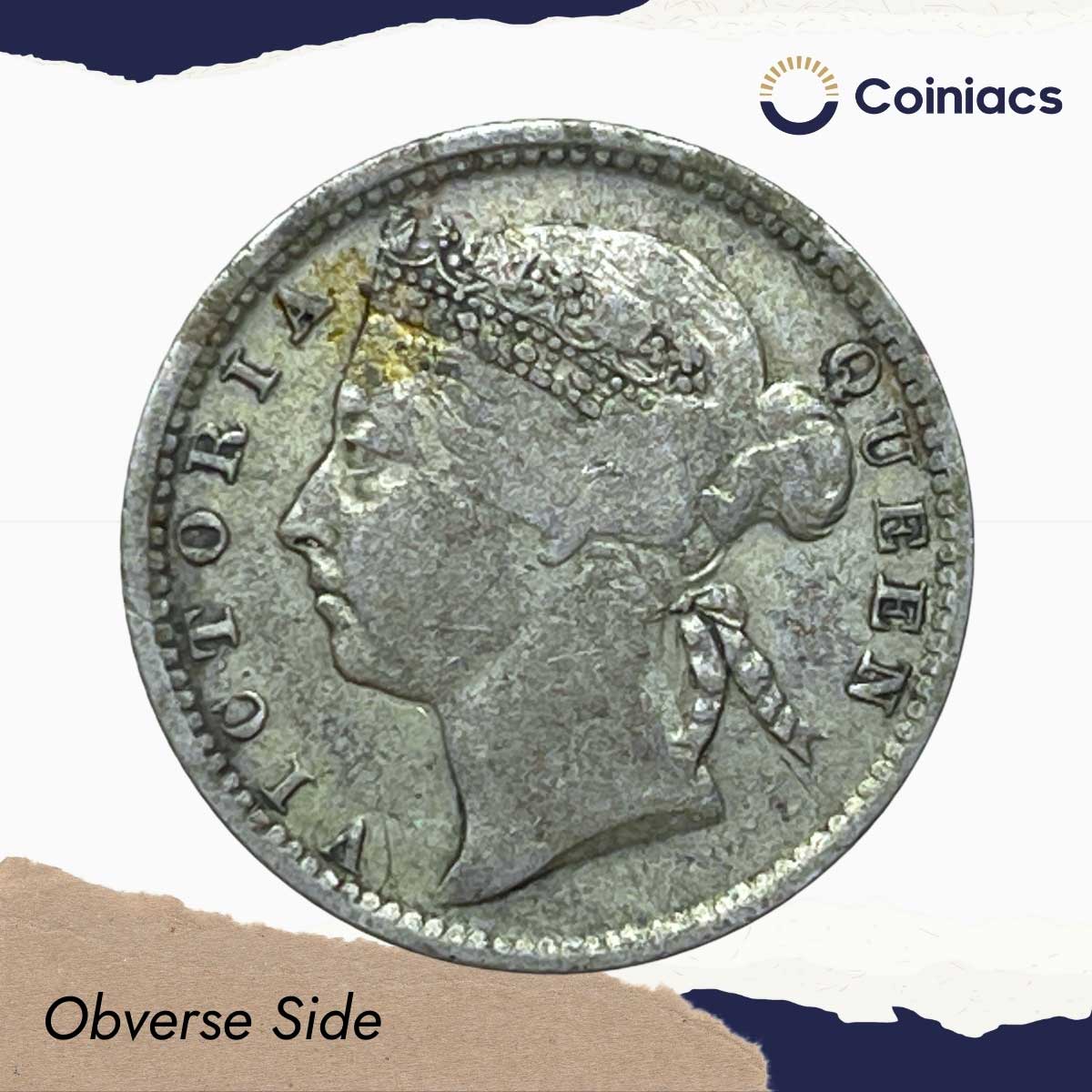 10 Cents Victoria Queen 1898 CE Royal Mint (Tower Hill) Silver Coin, Straits Settlements (British Malaysia), XF.