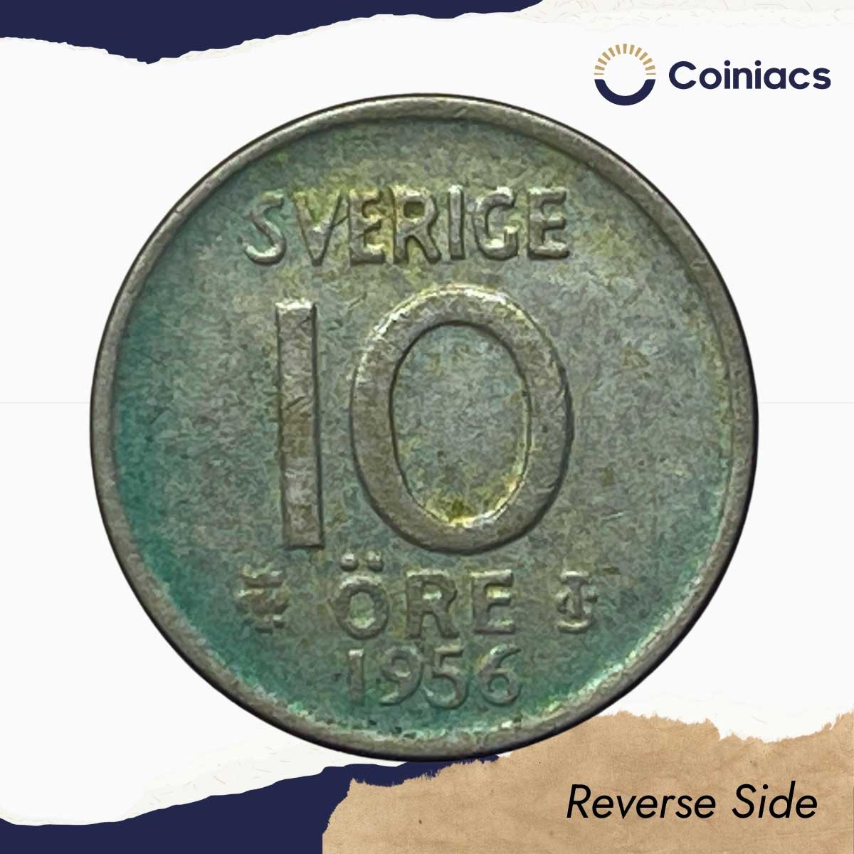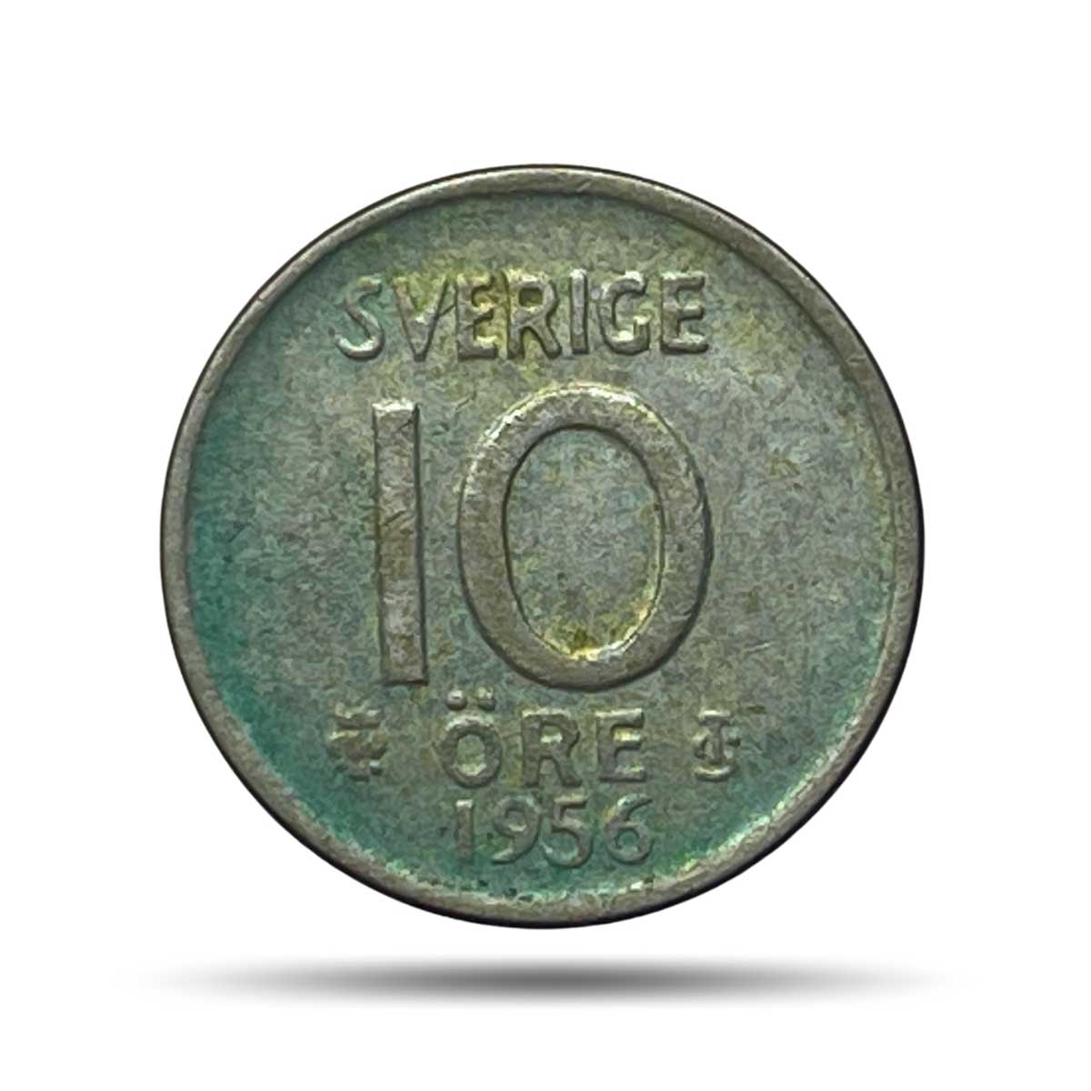 10 Ore Gustaf VI Adolf 1956 CE Kungliga Myntet (Mint) Silver Coin, Sweden, XF.