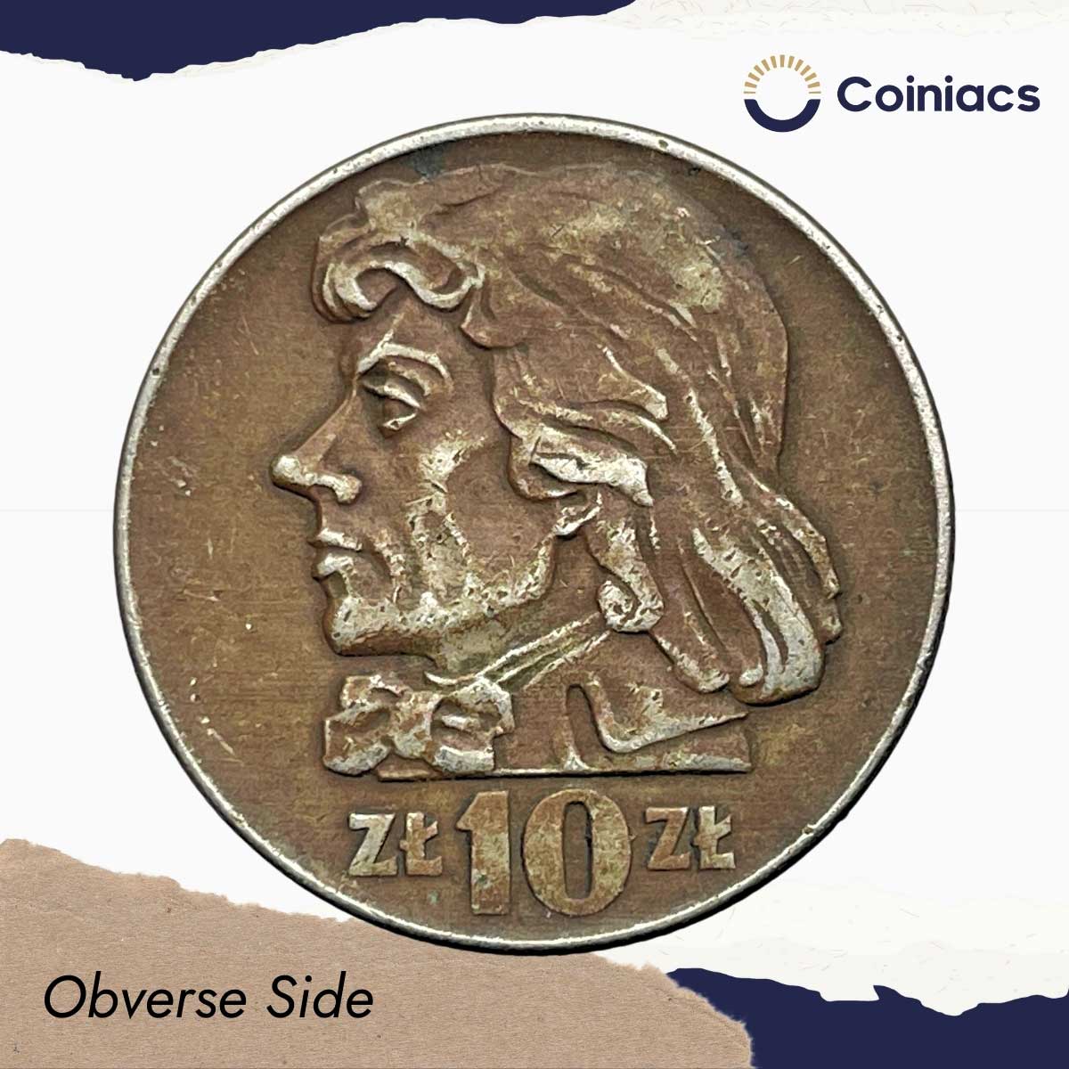 10 Zlotys Tadeusz Ko?ciuszko 1959 CE Copper-Nickel Coin, Poland, XF.