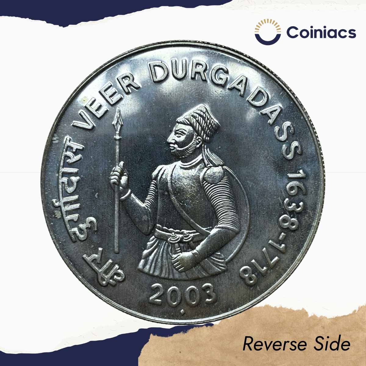 100 Rupees Veer Durgadass 2003 Mumbai Mint 35 gms Silver Commemorative Coin, Republic India Decimal Series, UNC