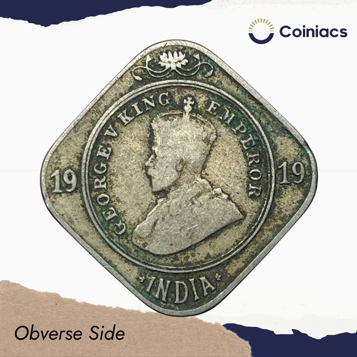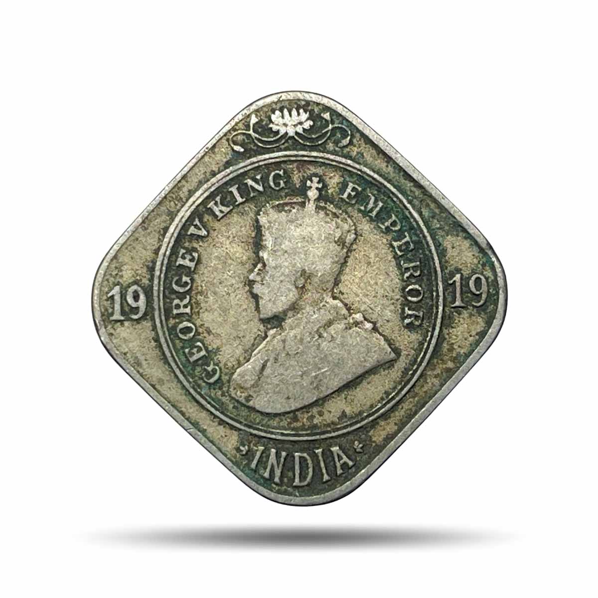 2 Annas George V King Emperor 1919 Calcutta Mint Cupro-Nickel Coin, British India Uniform Coinage, Collectible.