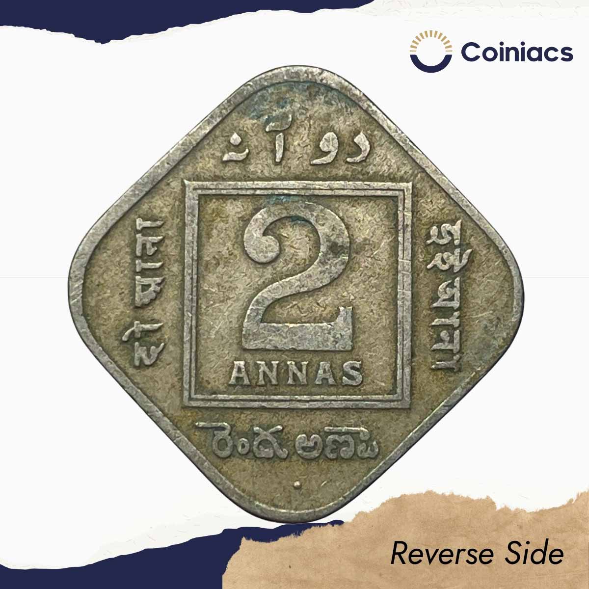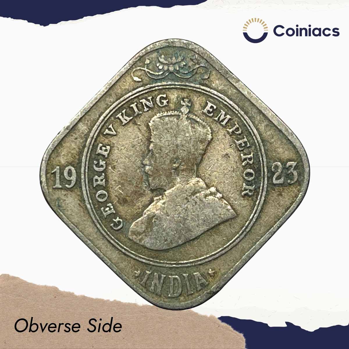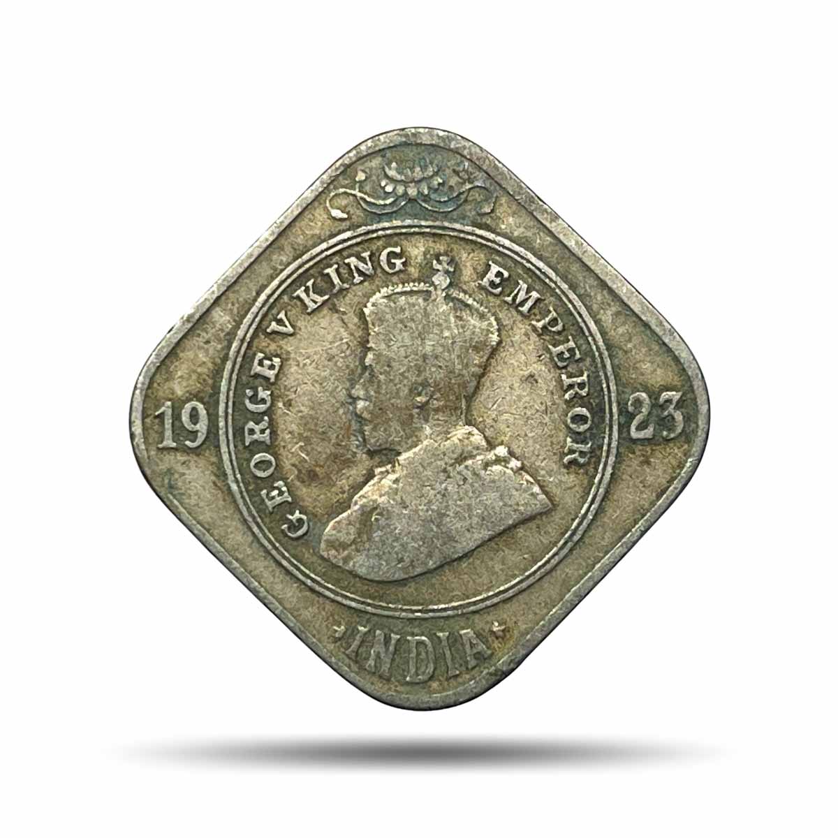 2 Annas George V King Emperor 1923 Bombay Mint Cupro-Nickel Coin, British India Uniform Coinage, Collectible.
