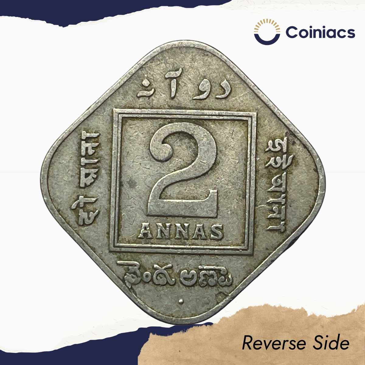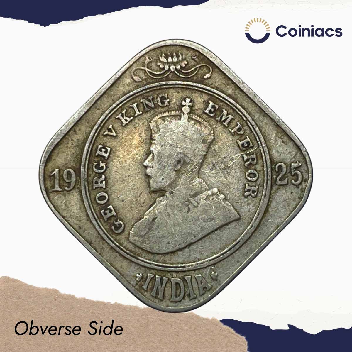 2 Annas George V King Emperor 1925 Bombay Mint Cupro-Nickel Coin, British India Uniform Coinage, Collectible.