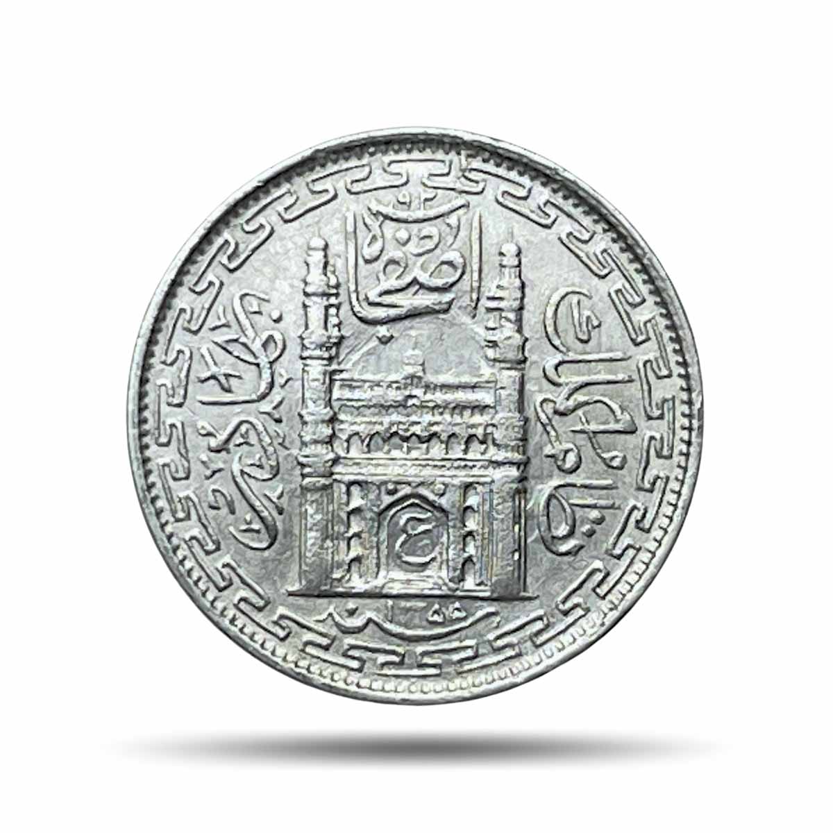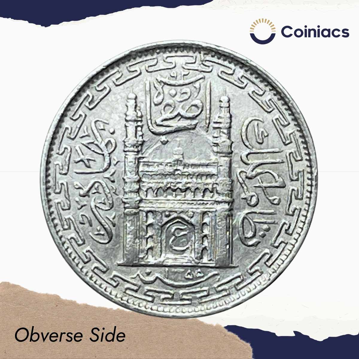 2 Annas Mir Usman Ali Khan RY 26 1355 AH (Rare Variety) Silver Old Coin, Princely State of Hyderabad, Collectible.