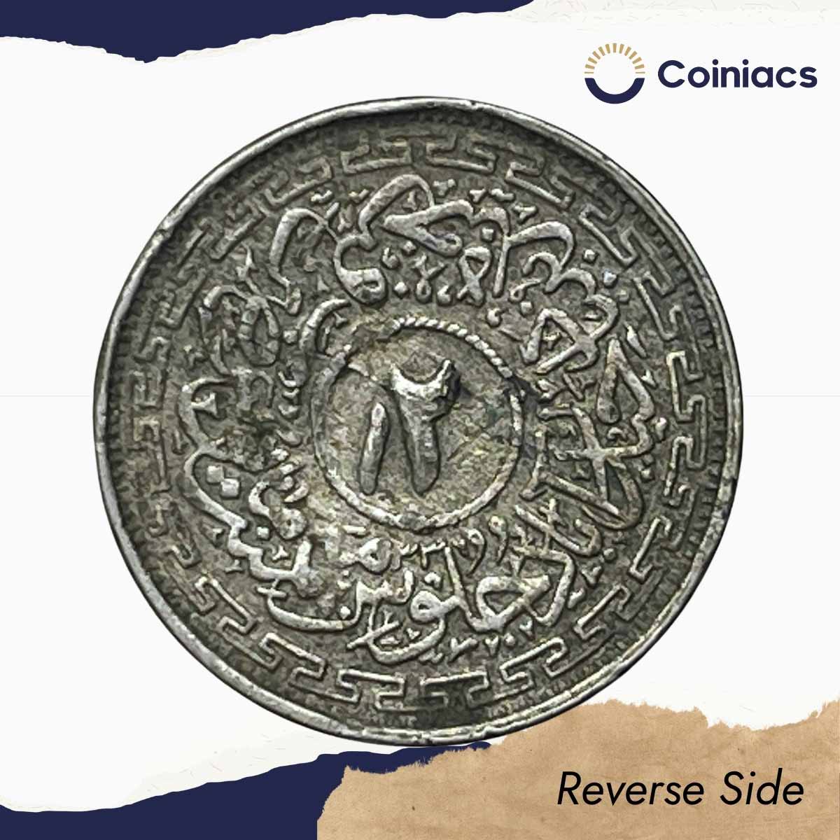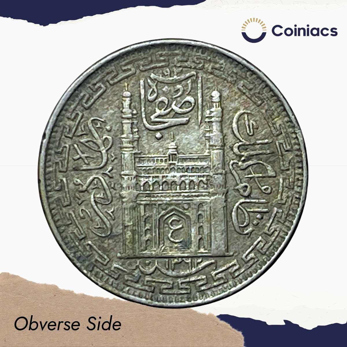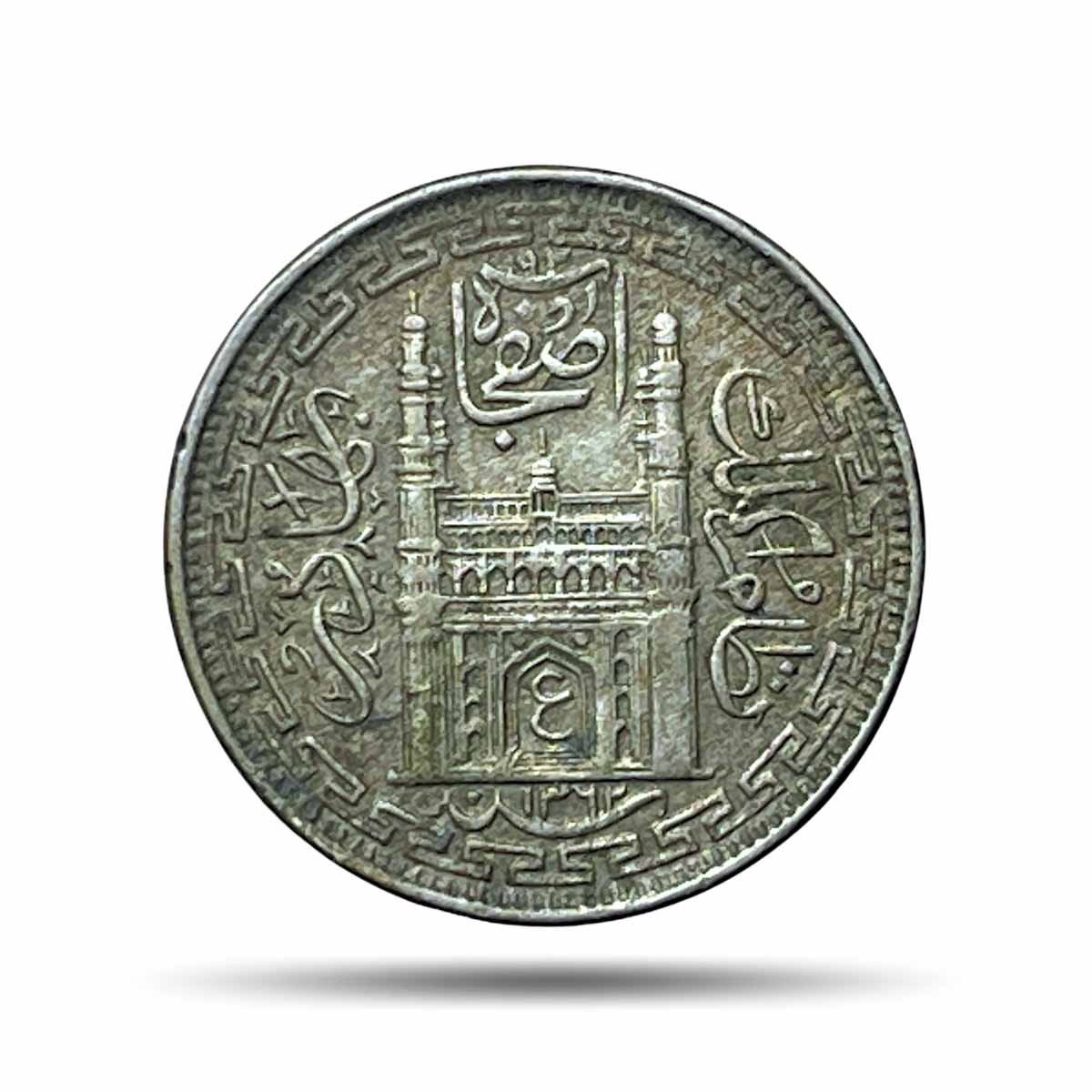 2 Annas Mir Usman Ali Khan RY 33 1362 AH (1943 CE) Silver Old Coin, Princely State of Hyderabad, Collectible.
