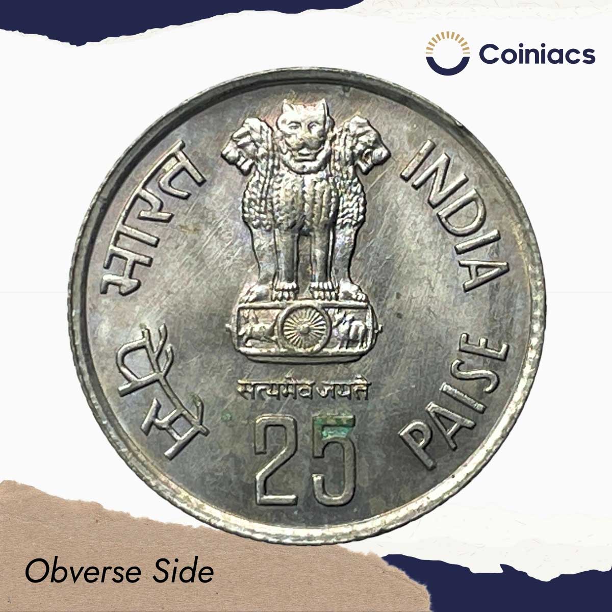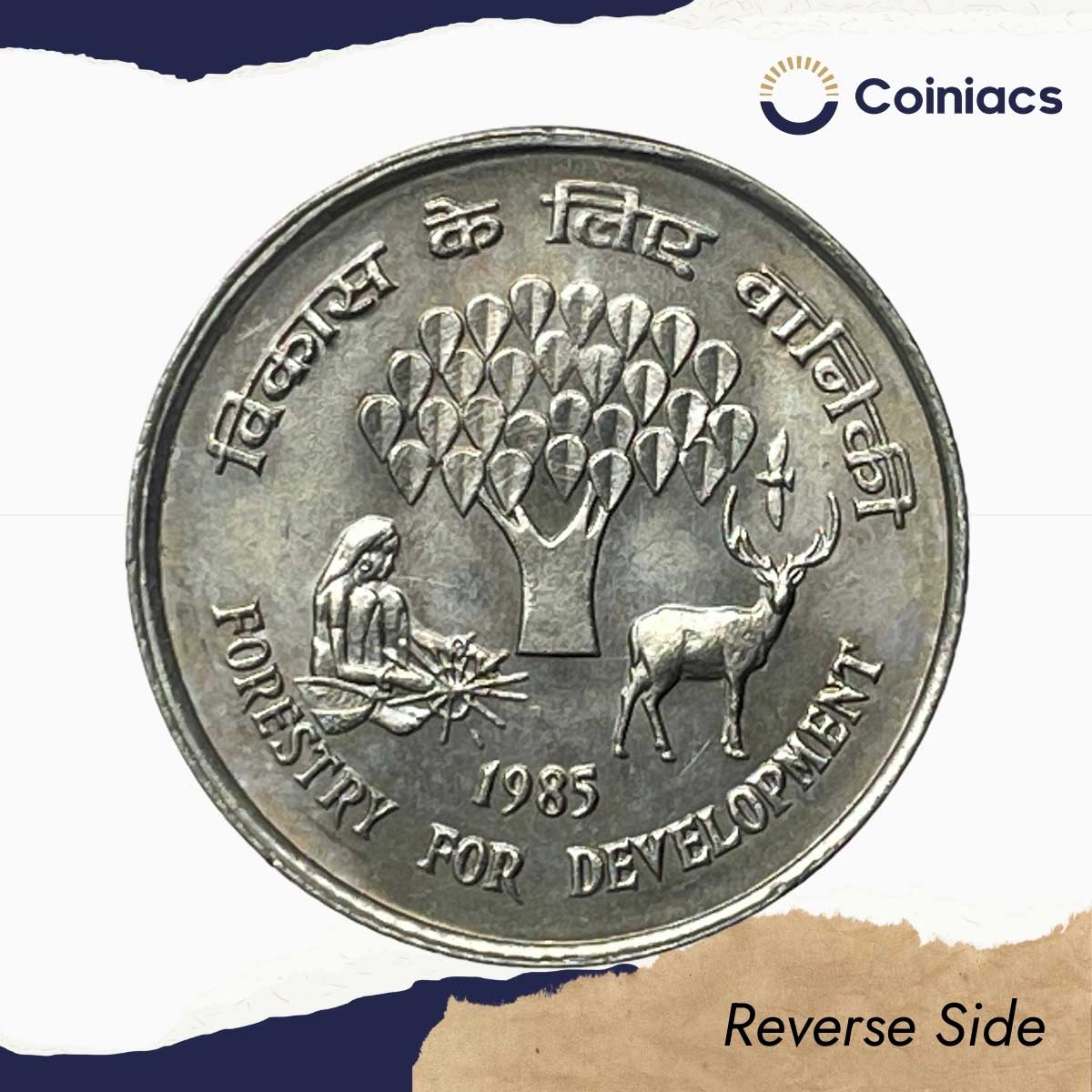 25 Paise Forestry For Development 1985 Calcutta Mint Cupro-Nickel Commemorative Coin, Republic India Decimal Series, UNC.