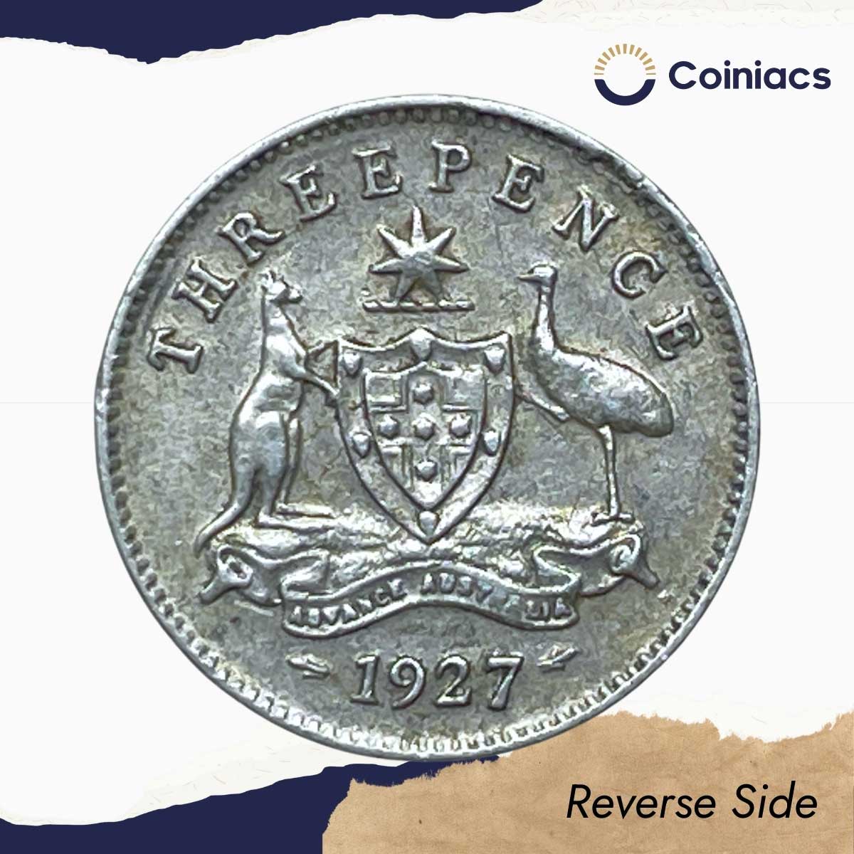 3 Pence George V 1927 Royal Mint Silver Coin, Australia, Collectible.