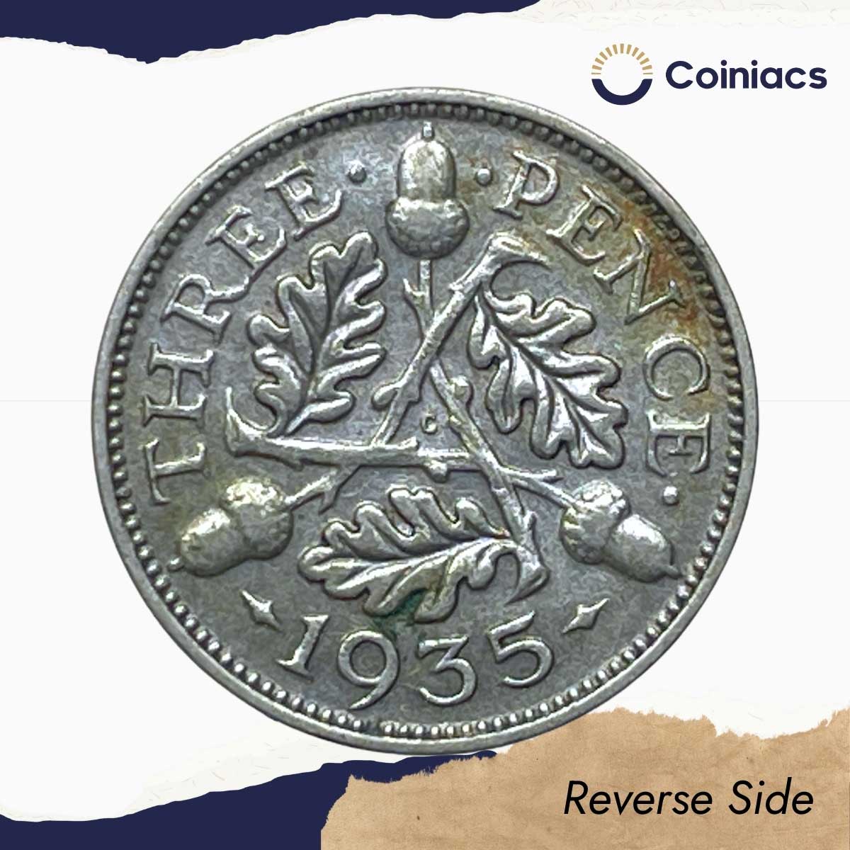 3 Pence George V 1935 (4th Coinage) Royal Mint (Tower Hill) Silver Foreign Coin, United Kingdom, XF.