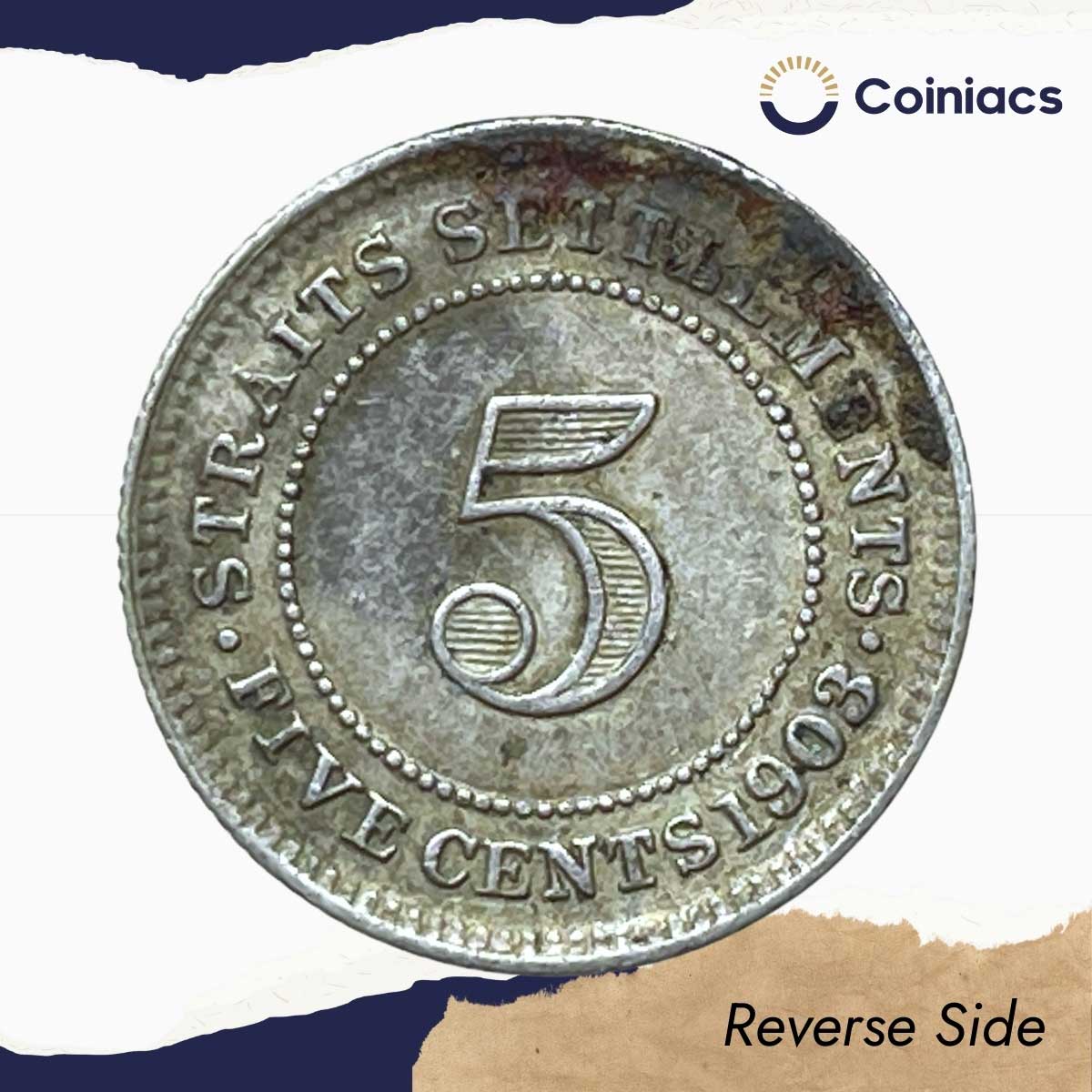 5 Cents Edward VII 1903 Royal Mint (Tower Hill) Silver Foreign Coin, Strait Settlements, XF.