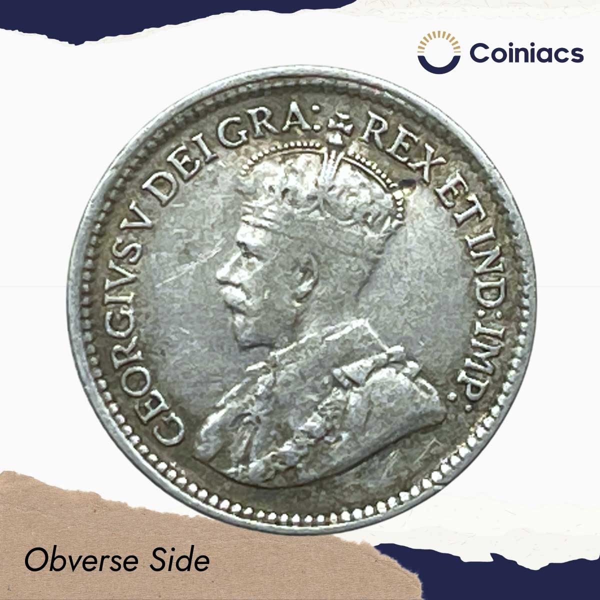 5 Cents George V with DEI GRATIA 1915 CE Silver Coin, Canada, Collectible.