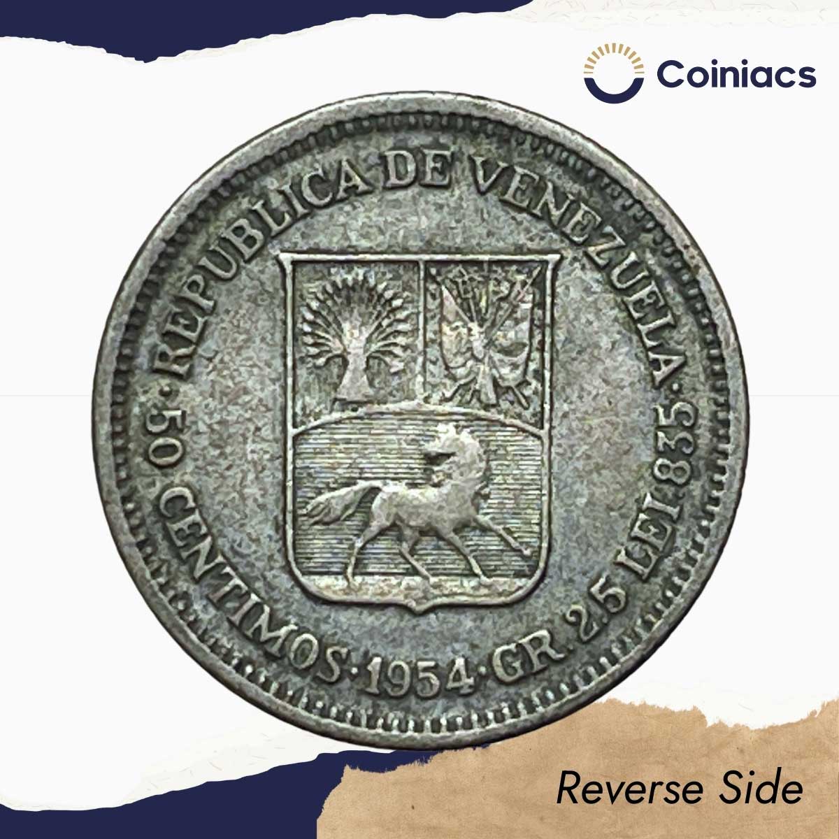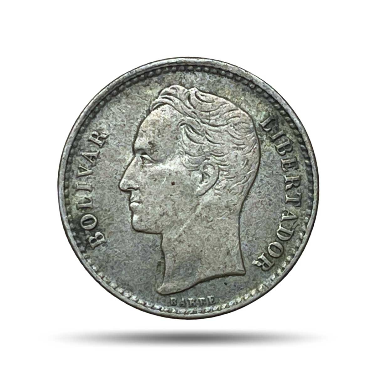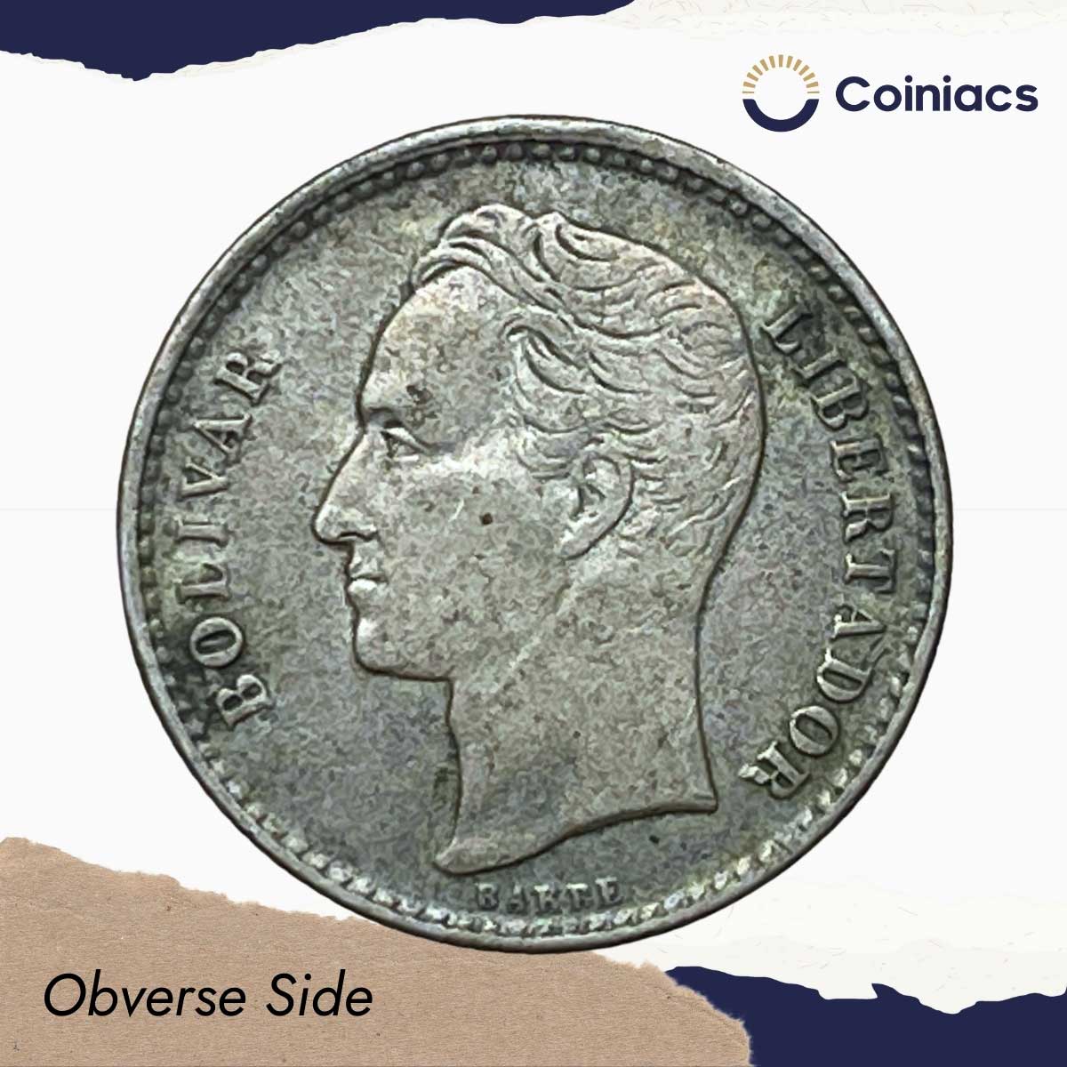 50 Centimos BOLIVAR LIBERTADOR 1954 United States Mint of Philadelphia Silver Foreign Coin, Venezuela, Collectible.