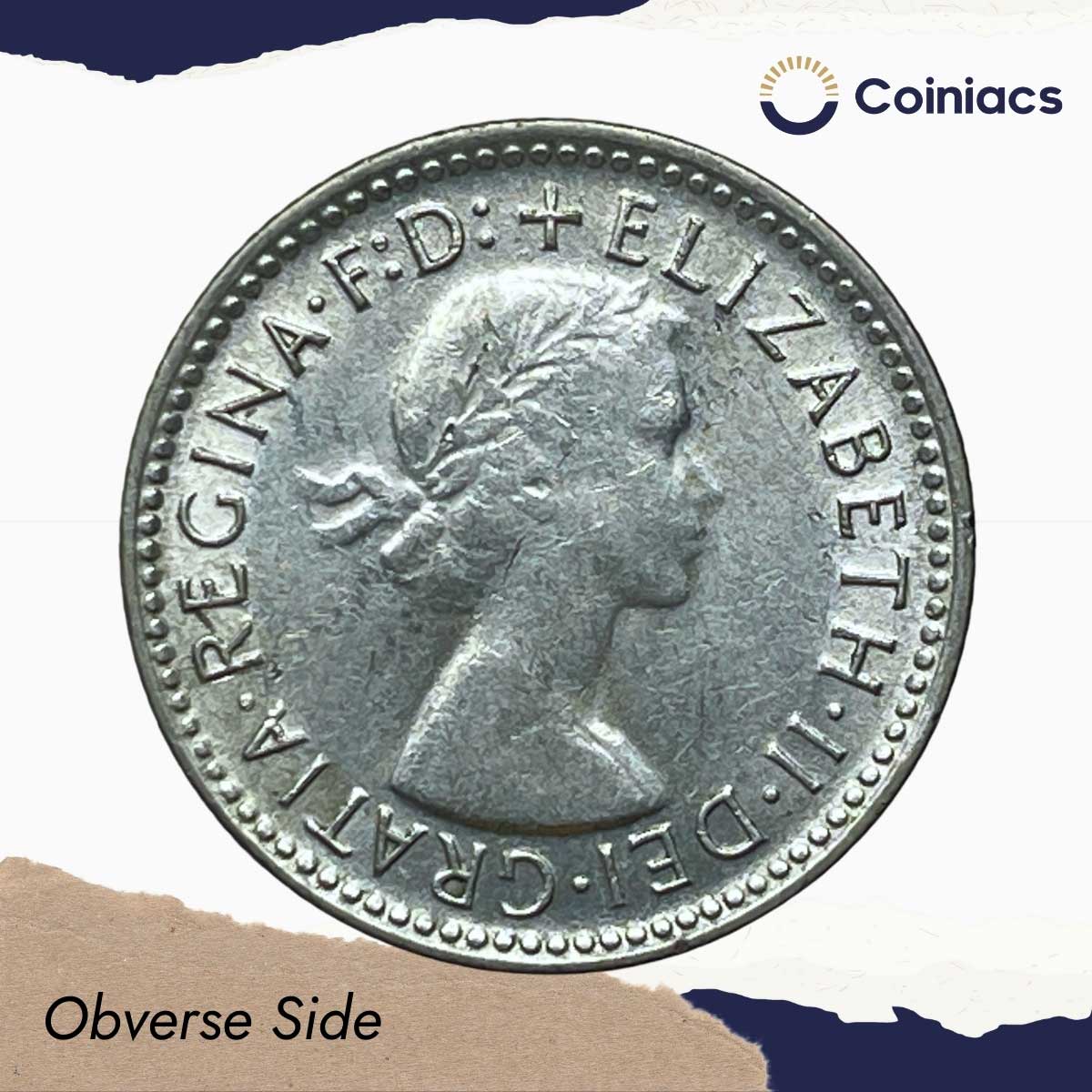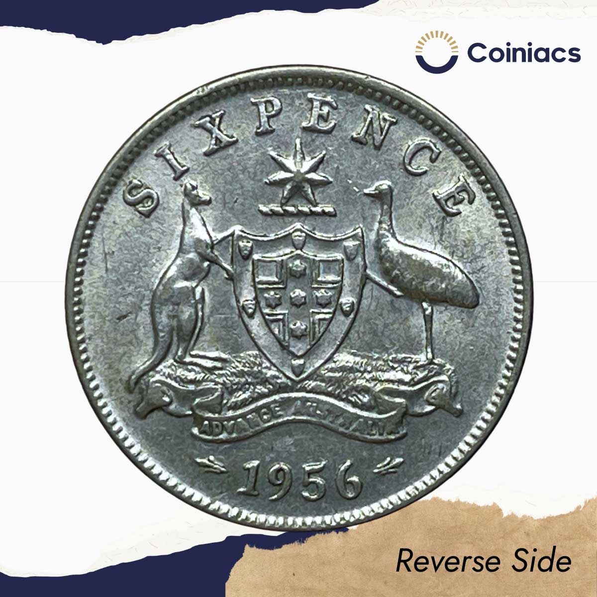 6 Pence Elizabeth II 1956 Royal Mint Silver Foreign Coin, Australia, UNC.