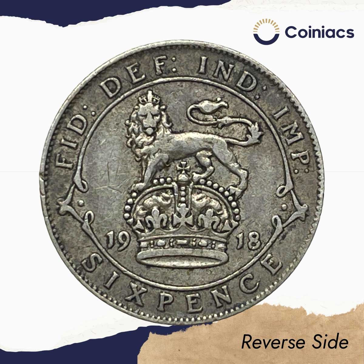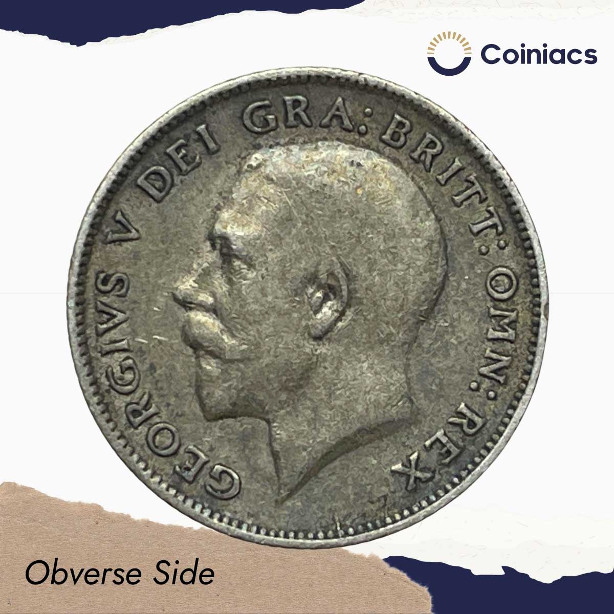 6 Pence George V (1st coinage) 1918 Royal Mint (Tower Hill) Silver Coin, United Kingdom, XF.