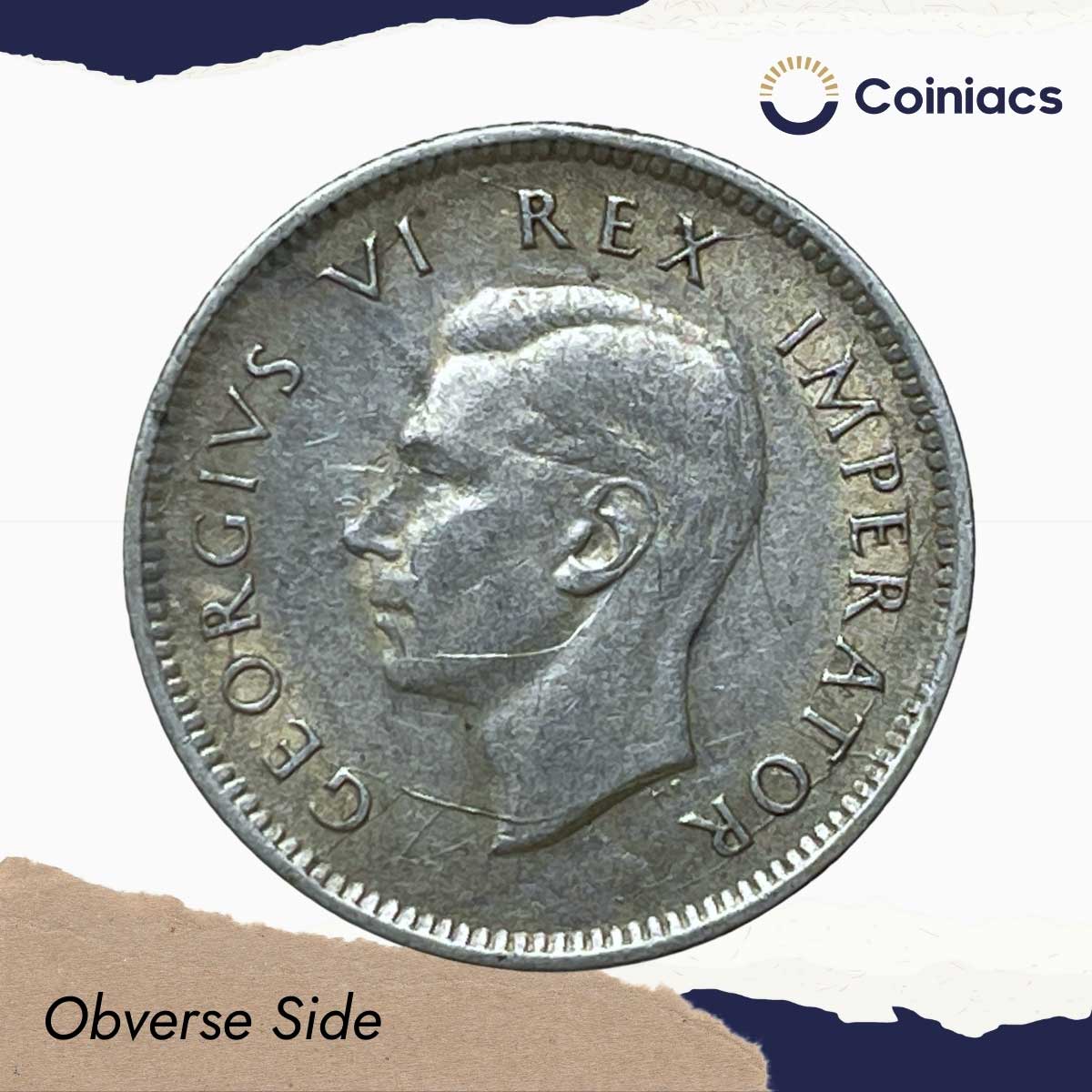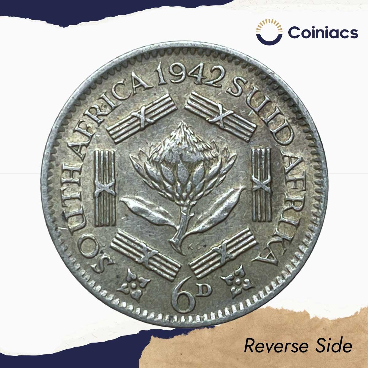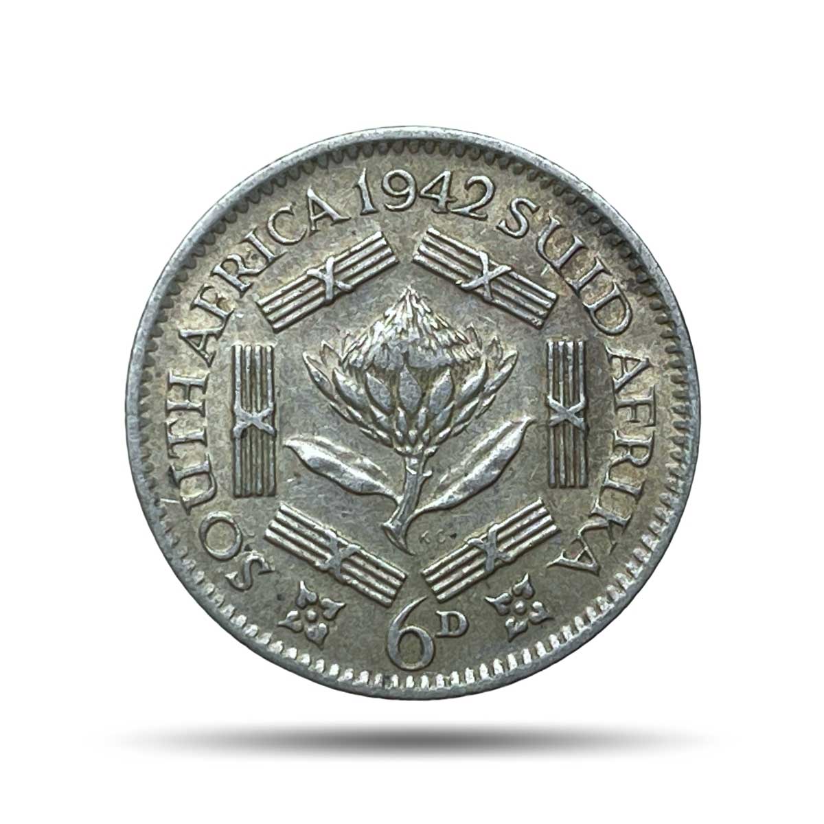 6 Pence George VI 1942 (Rex Imperator) Pretoria Mint Silver Foreign Coin, South Africa, XF.