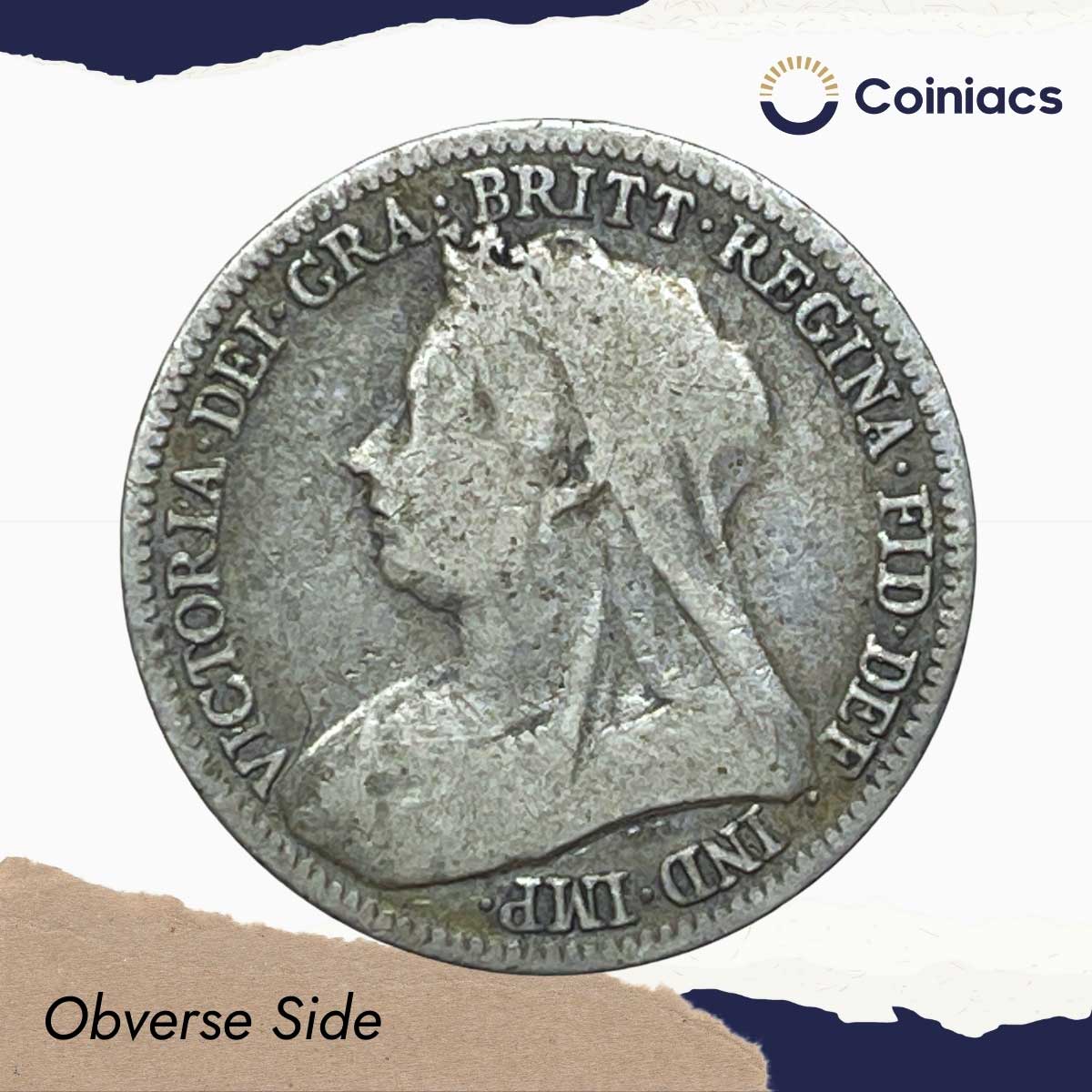 6 Pence Victoria (3rd portrait) 1893 CE Royal Mint (Tower Hill) Silver Coin, United Kingdom, Collectible.