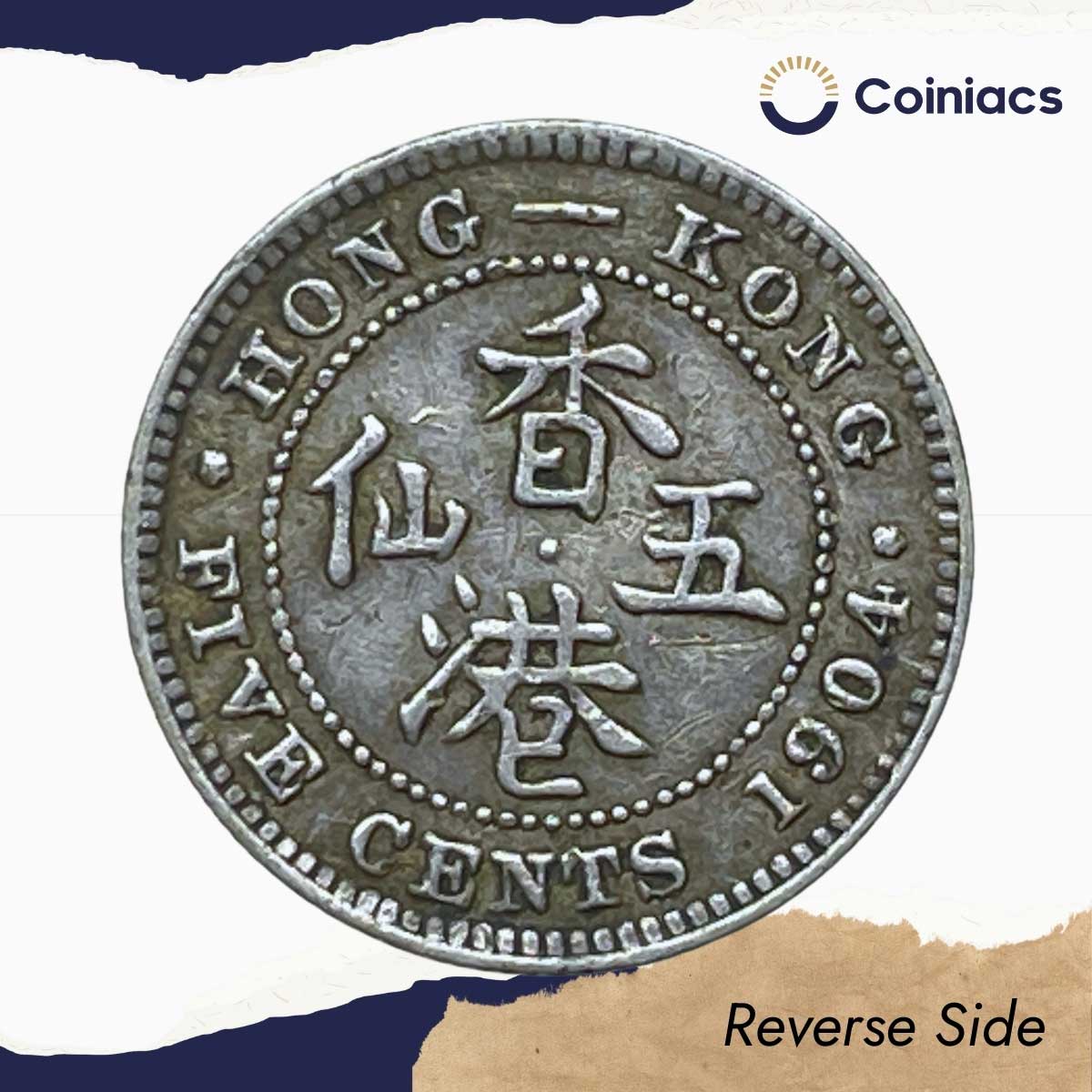 Five Cents Edward VII 1904 CE Royal Mint (Tower Hill) Silver Coin, Hong Kong, XF+.