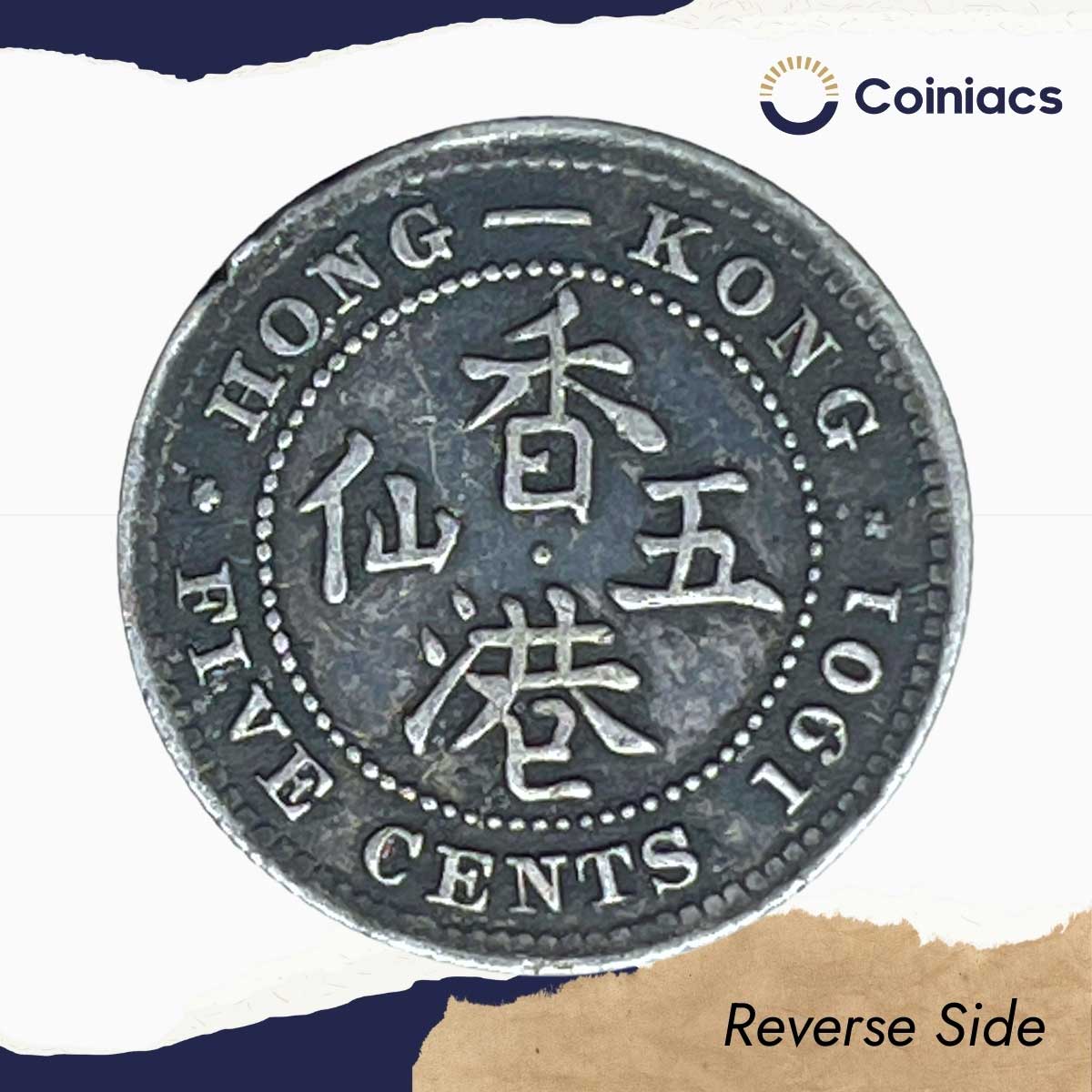 Five Cents Victoria 1901 CE Royal Mint (Tower Hill) Silver Coin, Hong Kong, XF.
