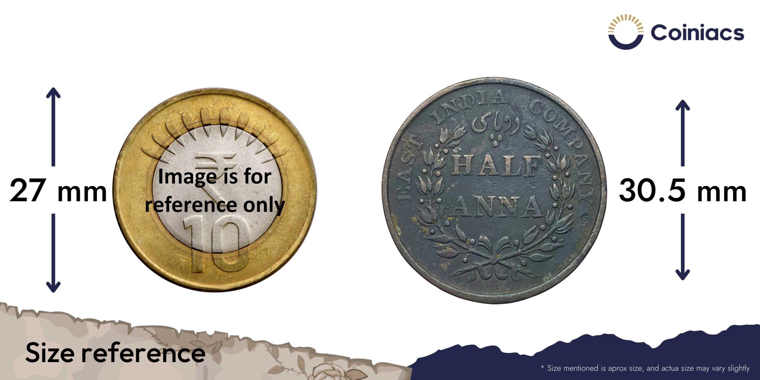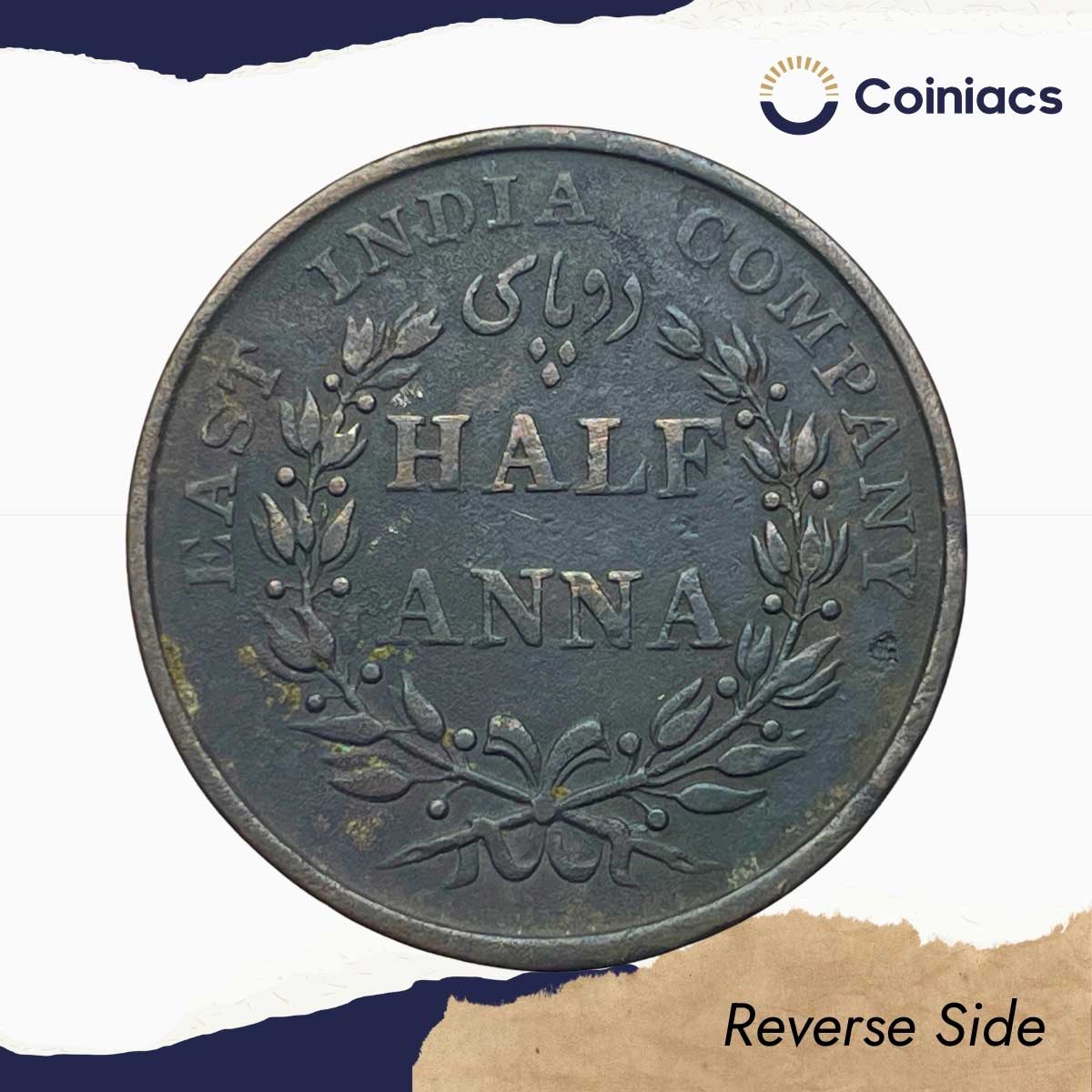 Half Anna East India Company 1835 Copper Coin, British India Uniform Coinage, Collectible.