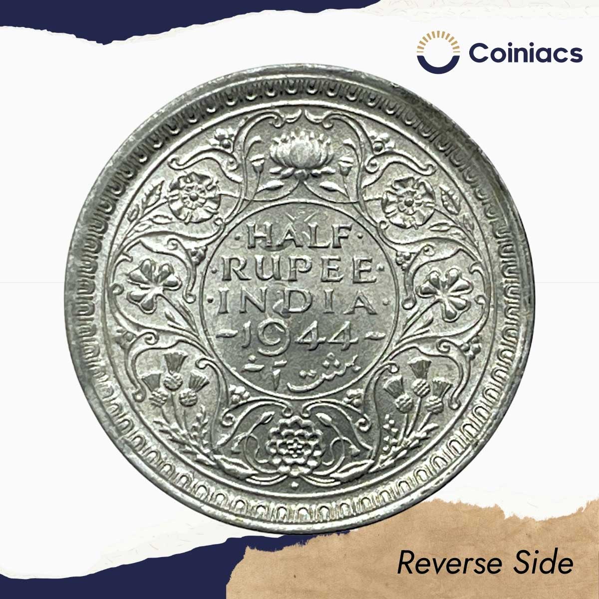 Half Rupee George VI King Emperor 1944 Bombay Mint (Obv B, Rev III) Silver Coin, British India Uniform Coinage, UNC.