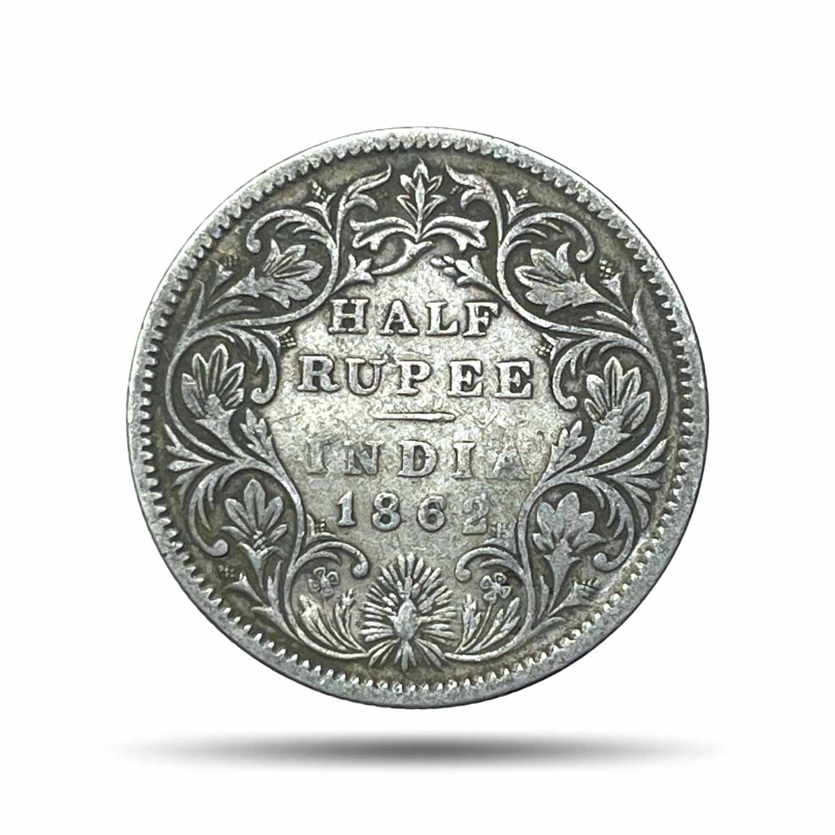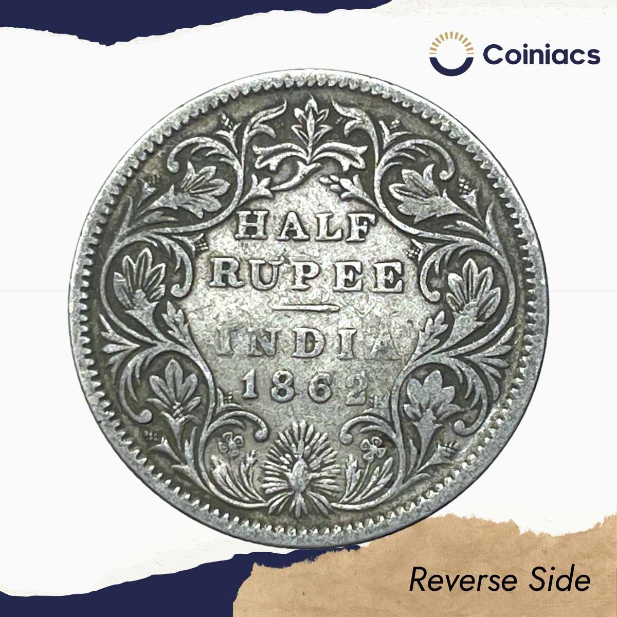 Half Rupee Victoria Queen Crowned 1862 CE Silver old coin, British India Uniform Coinage, Collectible