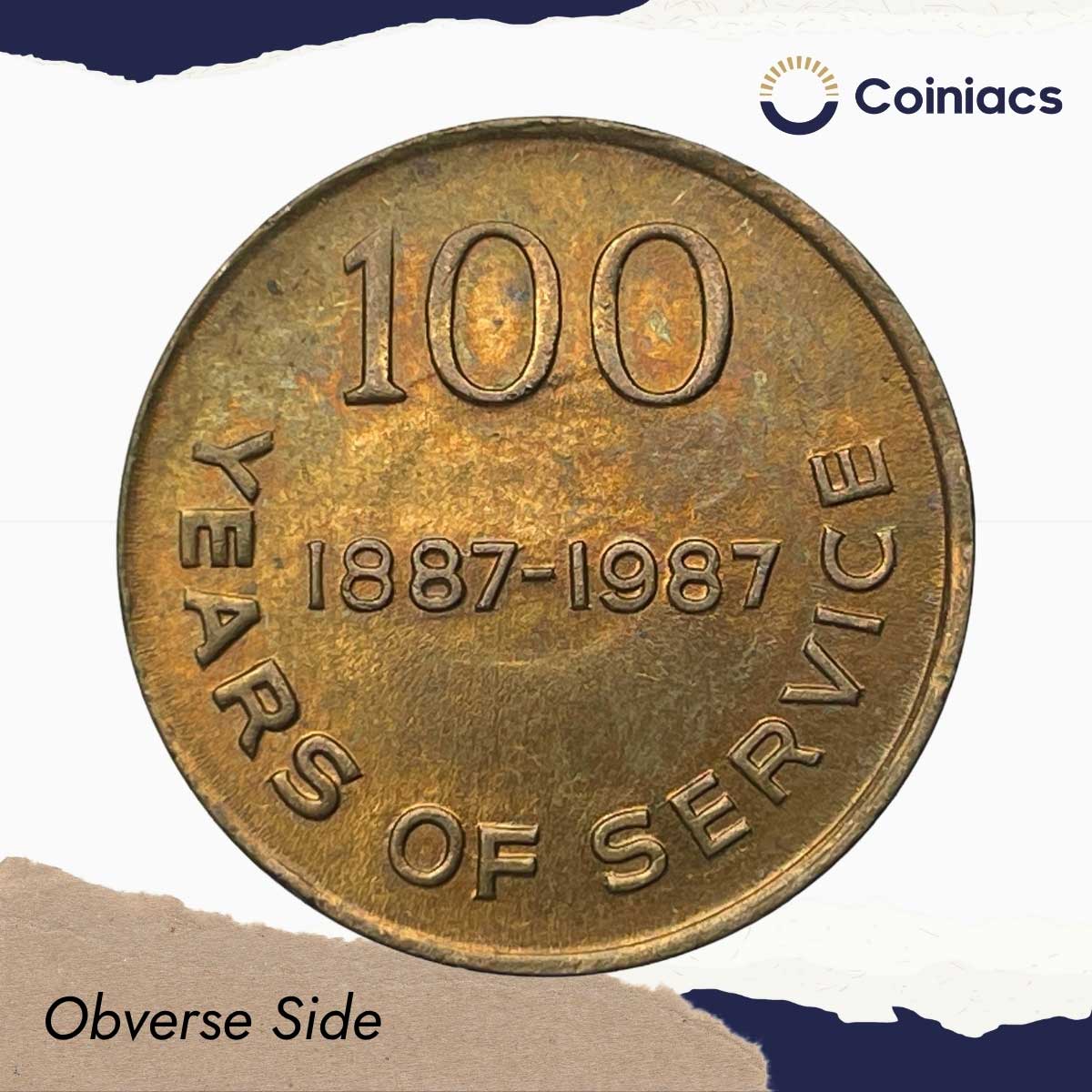 Medal 100 Years of Service 1887-1987 South Eastern Railway Bengal Nagpur Railway Copper
