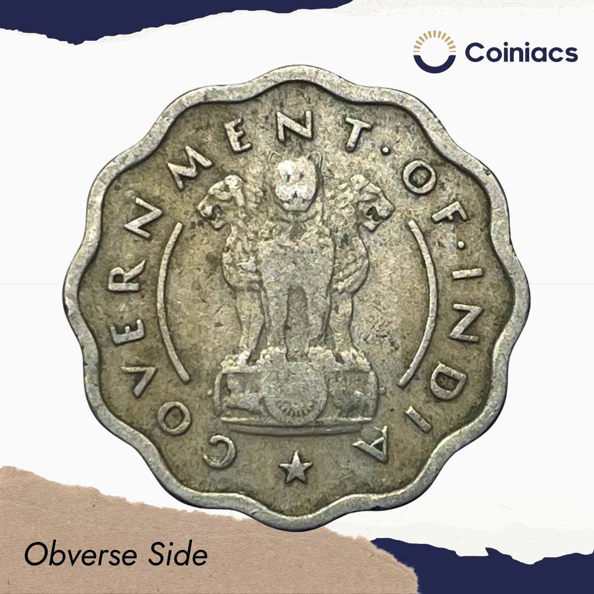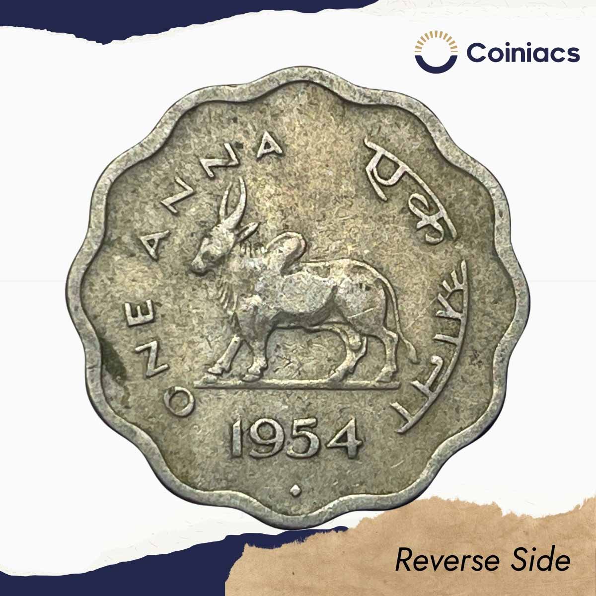 One Anna Bull 1954 Bombay Mint Copper-Nickel Coin, Republic India Anna Series, XF.