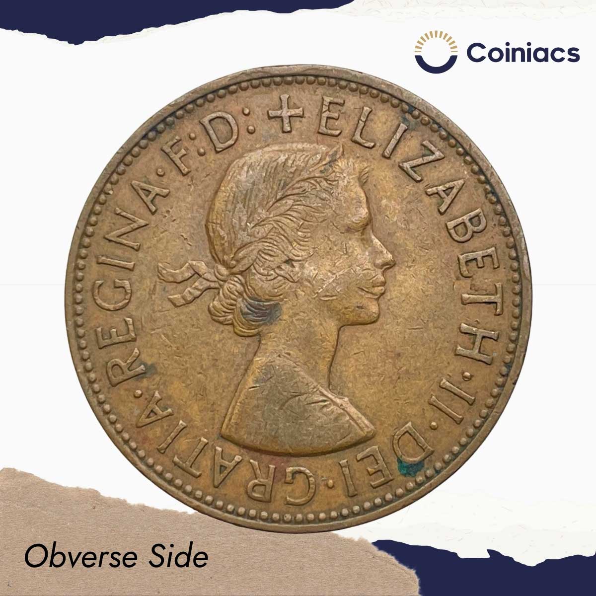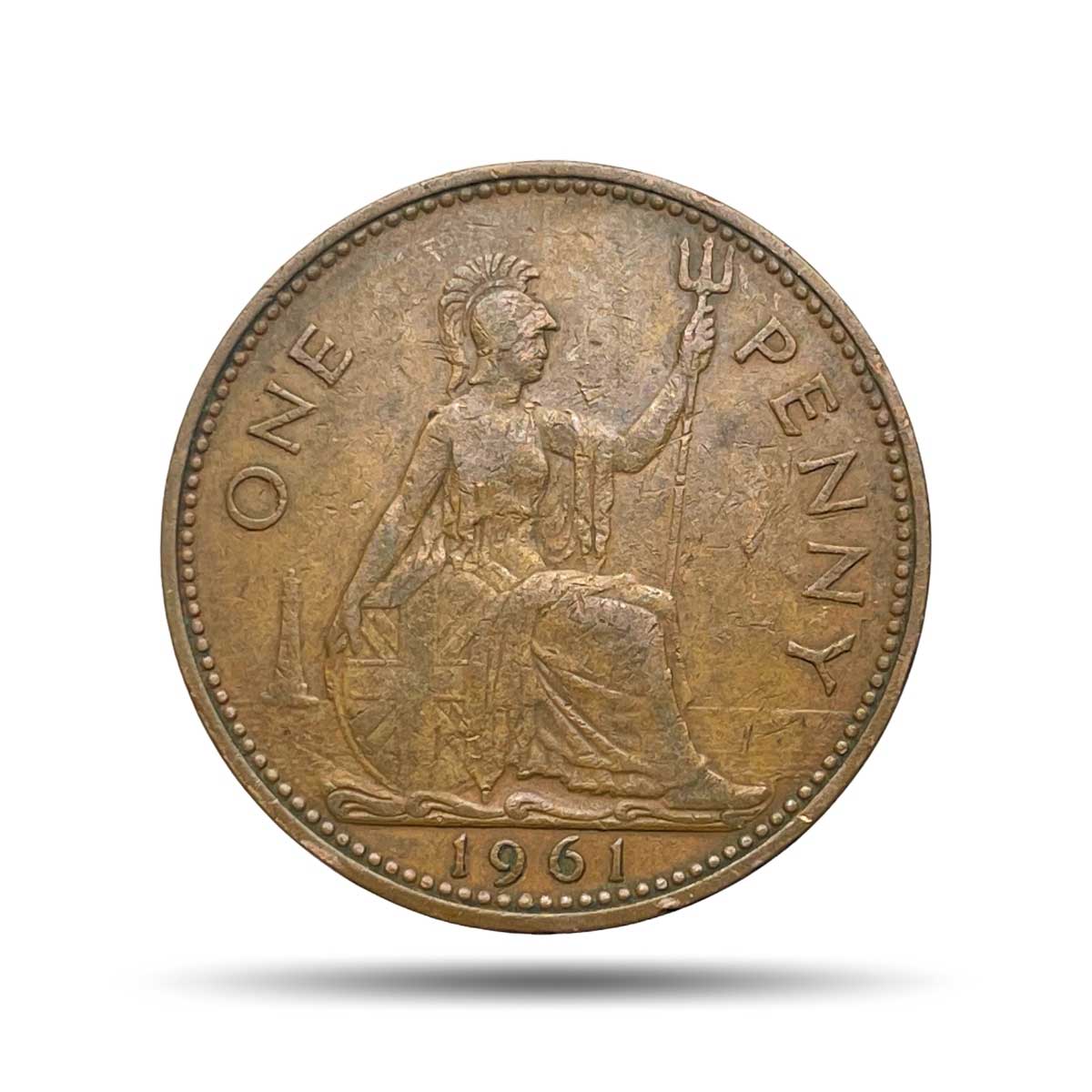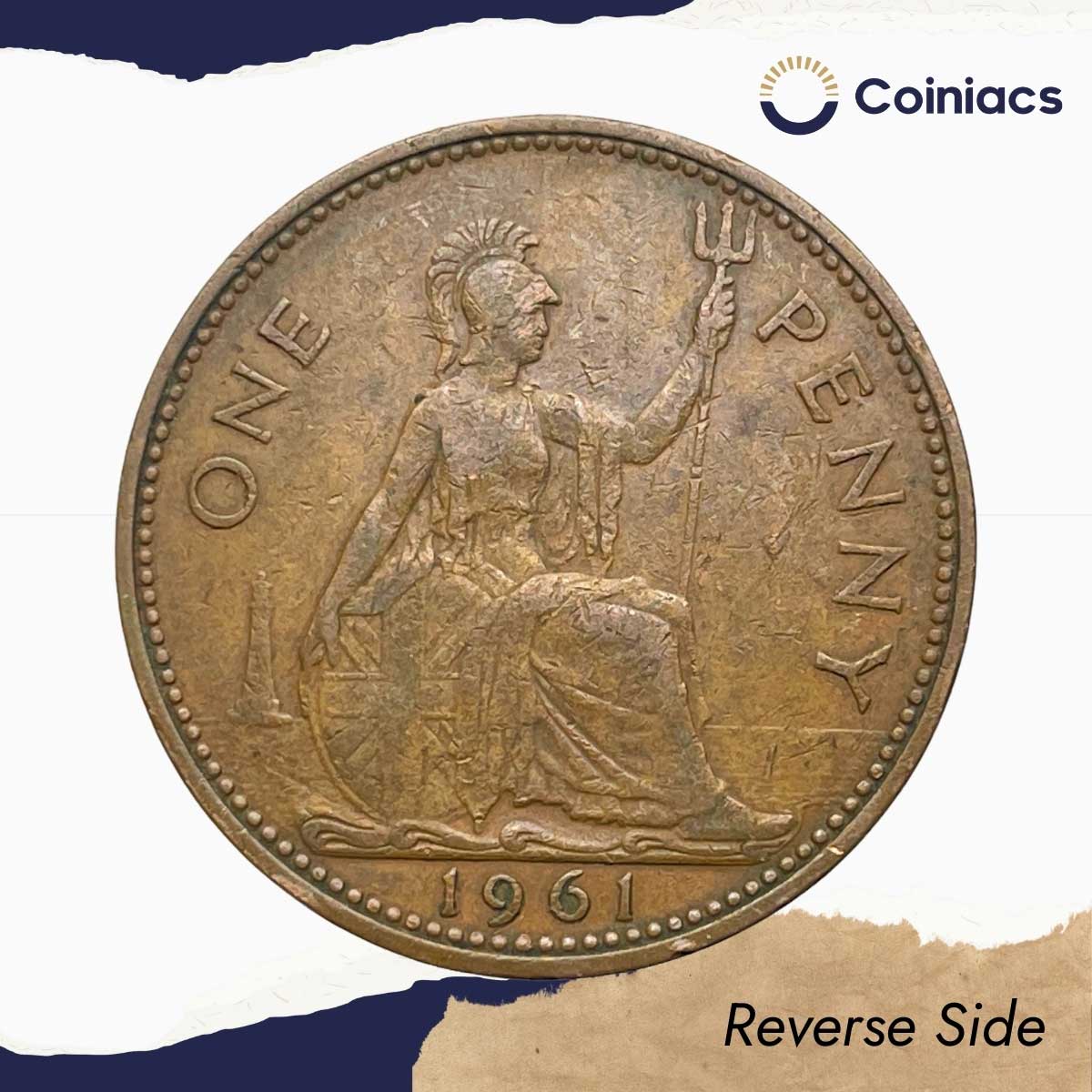 One Penny Elizabeth II 1961 Bronze Coin, United Kingdom, Collectible.